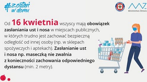 Od czwartku, 16 kwietnia 2020 roku wprowadzamy obowiązek zasłaniania ust i nosa.