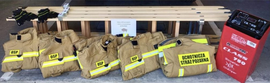 Gmina Nowy Dwór zakupiła: ubranie strażackie FHR 008 MAX PL- 5 szt.,które zostaną przekazane na rzecz jednostki OSP Nowy Dwór oraz prostownik z rozruchem, drabinę nasadkową DN-2,73 – 4 szt., rękawice SEIZ Fire-Worker- 2 szt., które zostaną przekazane na rzecz jednostki OSP Chilmony.
