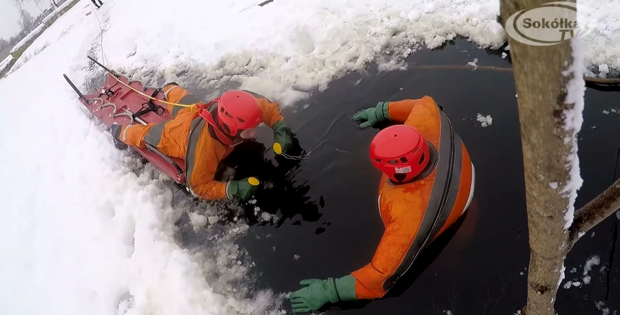 1. W przypadku załamania lodu staraj się zachować spokój i spróbuj głośno wzywać pomoc. 2. Najlepiej połóż się płasko na wodzie, rozkładając szeroko ręce i starając się wpełznąć na lód.