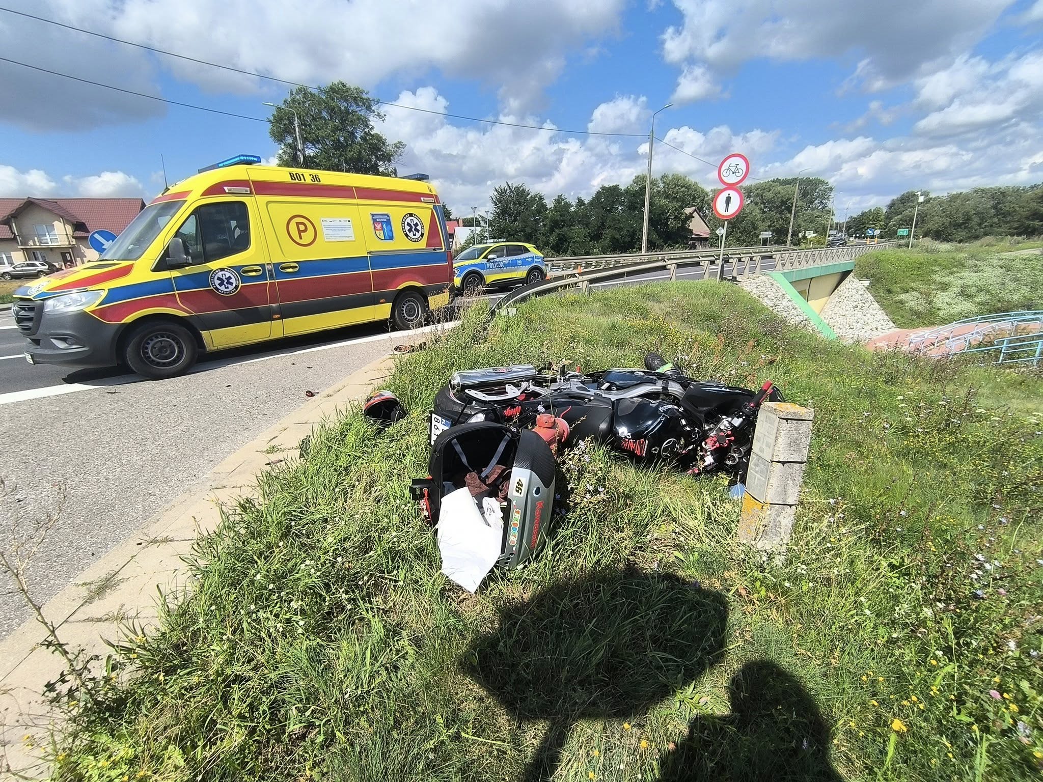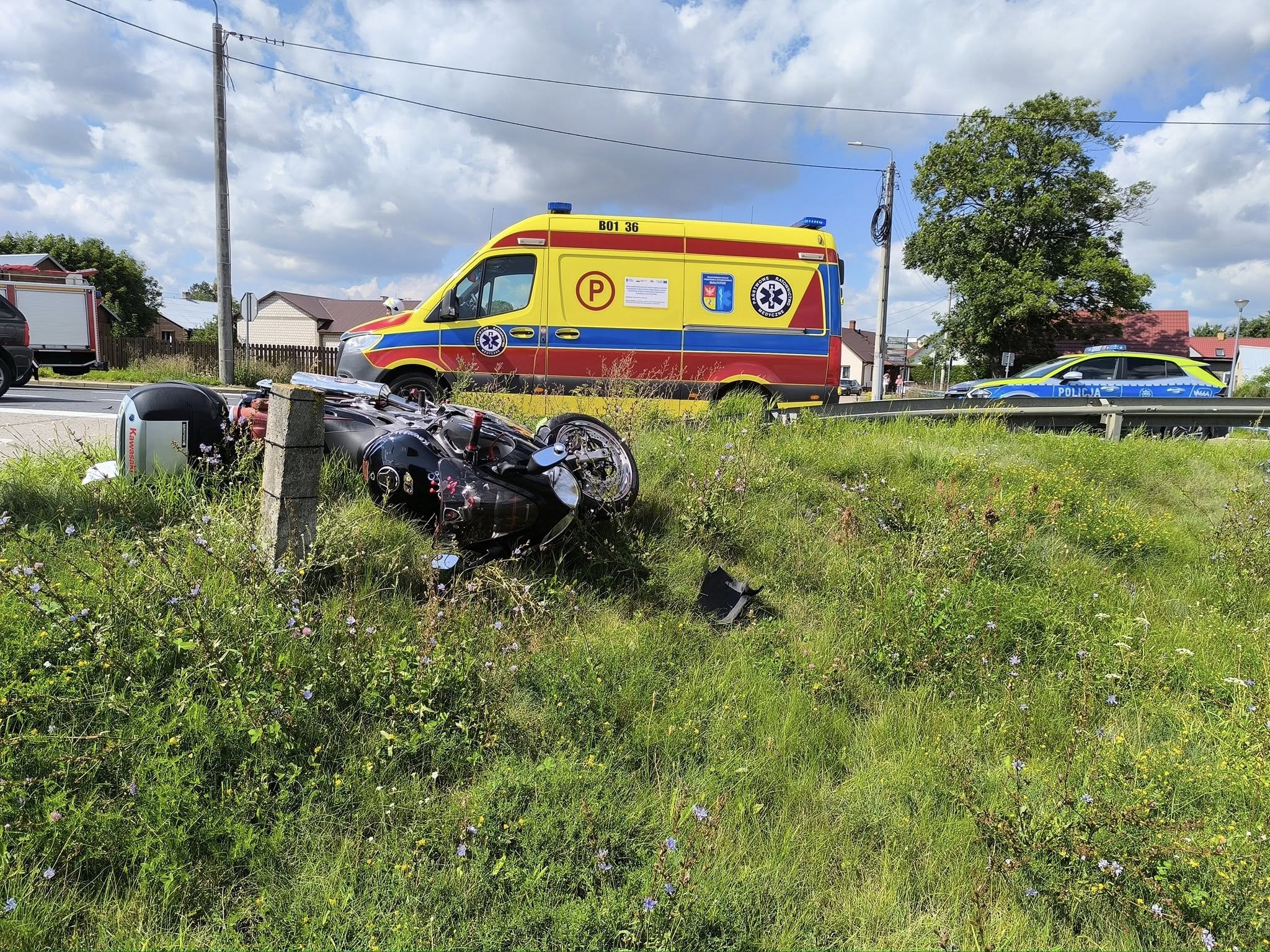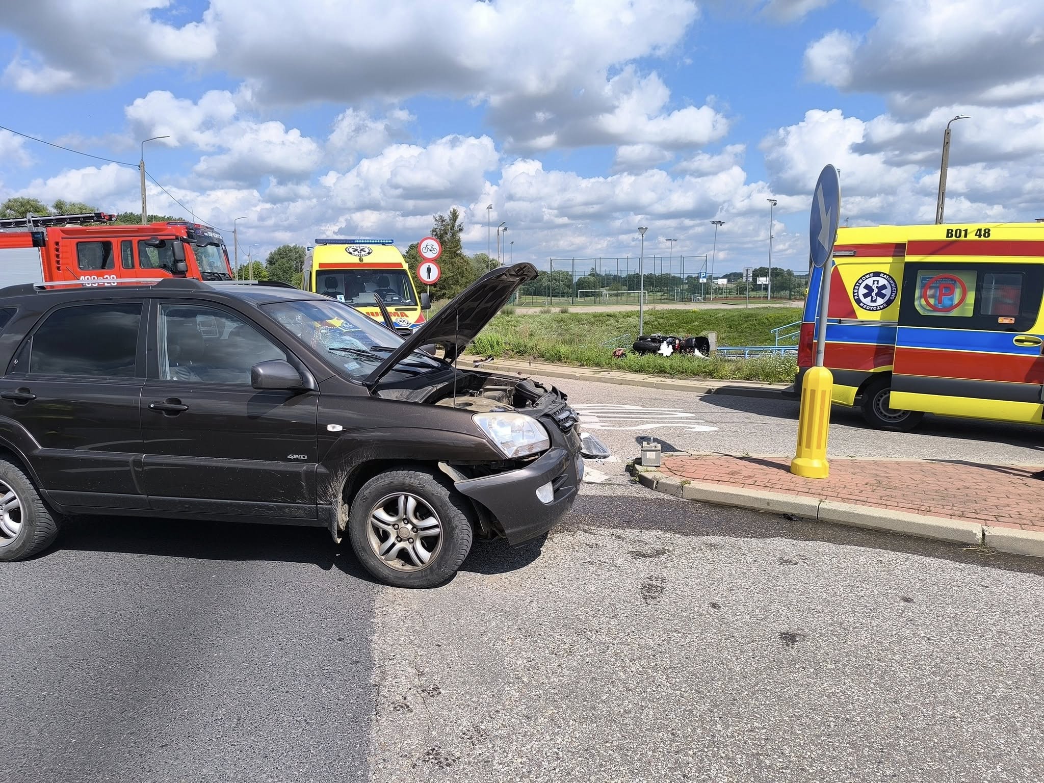 Na miejscu okazało się, że kierowca pojazdu osobowego KIA, wyjeżdżając z drogi podporządkowanej, nie ustąpił pierwszeństwa motocykliście, wskutek czego doszło do kolizji. Kierujący jednośladem został zabrany do szpitala.