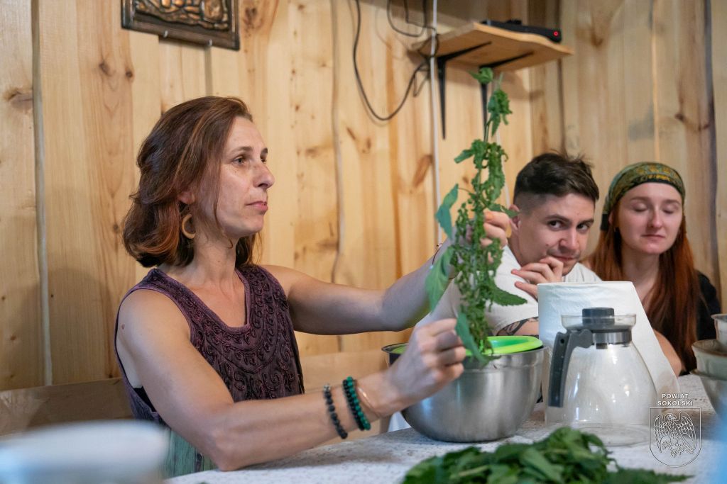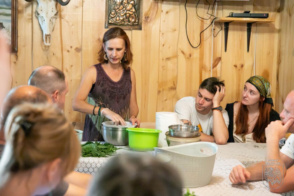 Stałym punktem programu są warsztaty zielarskie. Podczas jednego z dzisiejszych spacerów uczestnicy zbierali rośliny, które później wykorzystają nie tylko w domowych miksturach, ale także w tzw. dzikiej kuchni.
