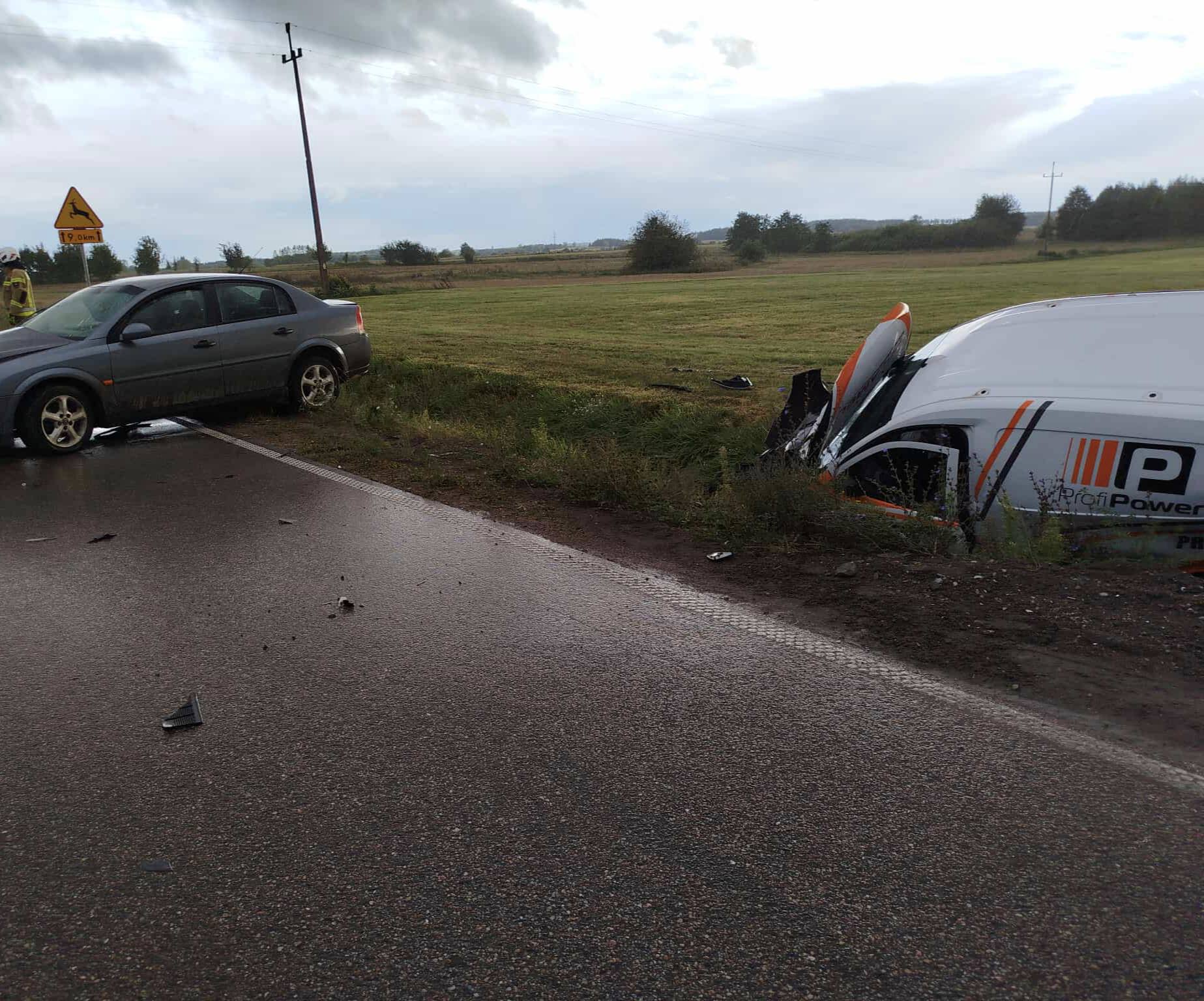 Po przybyciu na miejsce zdarzenia okazało się, że jeden z samochodów biorących udział w zdarzeniu zatrzymał się w przydrożnym rowie, natomiast drugi pozostał na pasie ruchu. Działania straży polegały na zabezpieczeniu miejsca zdarzenia oraz udzieleniu kwalifikowanej pierwszej pomocy osobom poszkodowanym. W pojazdach znajdowali się tylko kierowcy, po przybyciu ZRM zostali zabrani do szpitala. Szczegóły zdarzenia ustala policja.