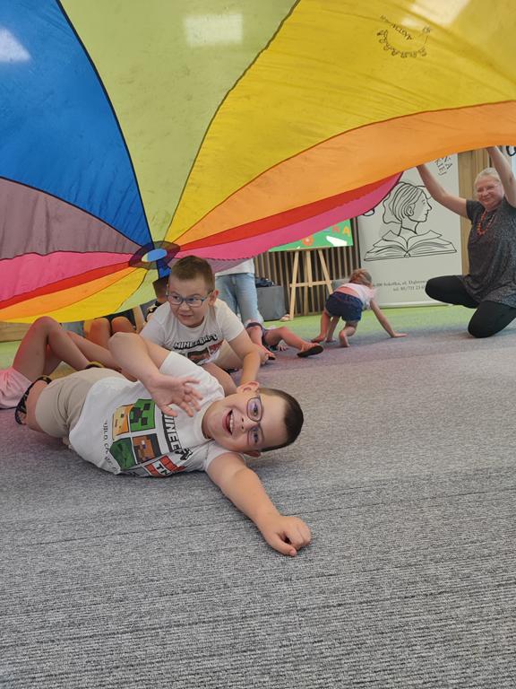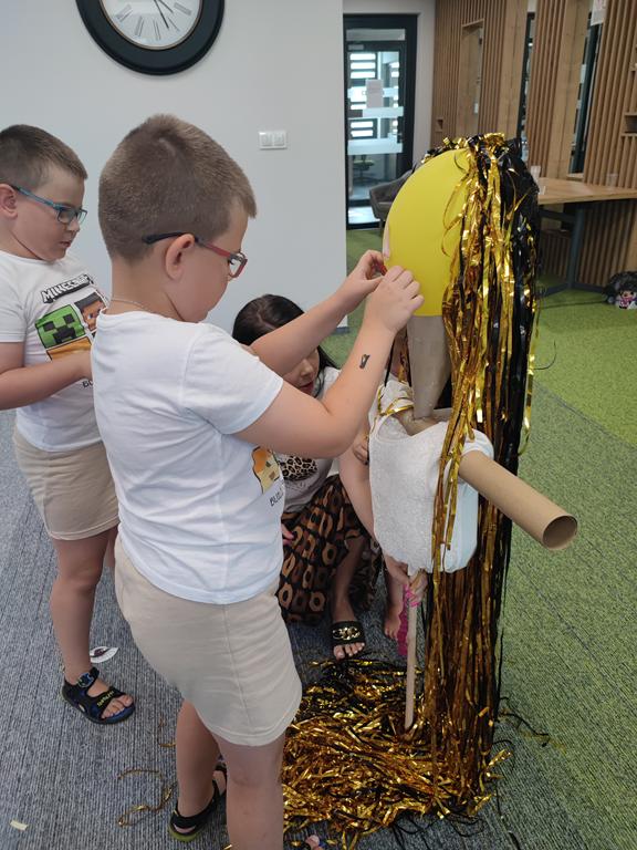 Tym razem czytanie odbyło się w nietypowy sposób. Przy aktywnej animacji, dzieci i rodzice wysłuchali opowieści o wakacjach, pięknym i radosnym czasie, i o spotkaniu z Panią Lato. Historia zakończyła się wyjątkowym zadaniem – z wykorzystaniem własnej wyobraźni i dostępnych materiałów, wykonana została kukła Pani Lato. Po pamiątkowej sesji zdjęciowej, w uroczystym orszaku odprowadzono ją w miejsce piękne, ale ustronne, by tam, pod okiem bibliotekarzy i czytelników zaczekała do następnej wakacyjnej pory.
