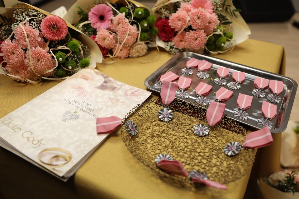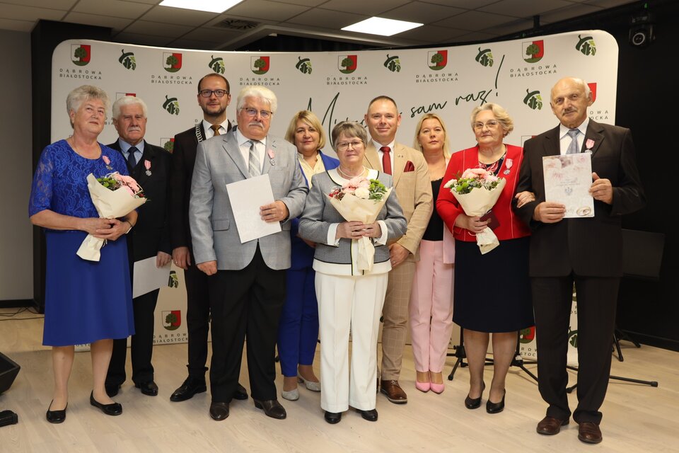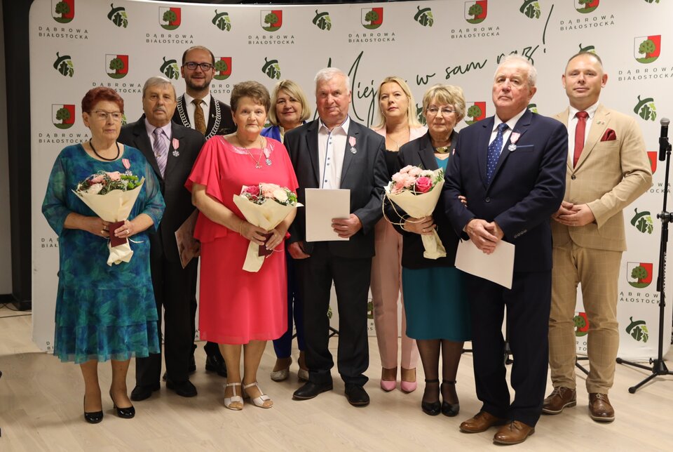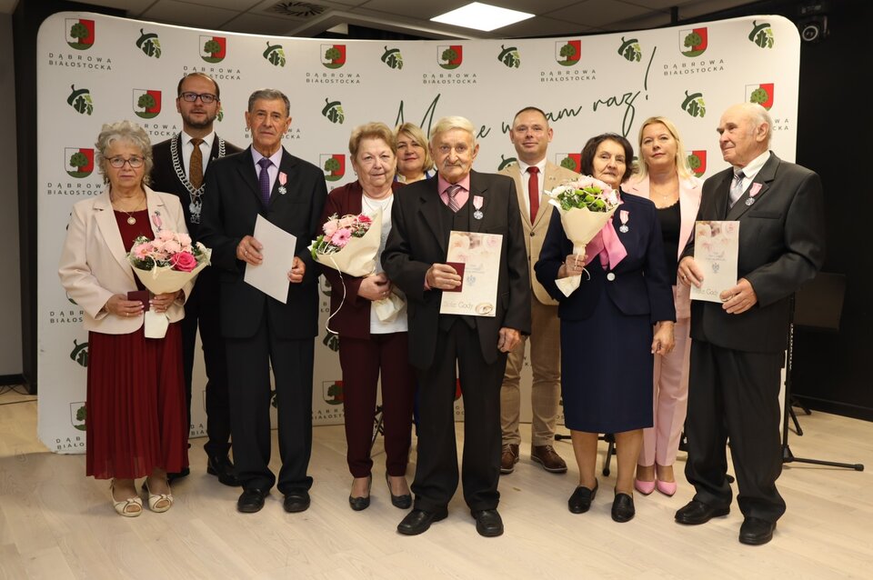 Jubilaci otrzymali z rąk burmistrza Dąbrowy Białostockiej pamiątkowe medale za długoletnie pożycie małżeńskie. Nie zabrakło serdecznych życzeń, ciepłych słów oraz występów artystycznych. Uroczystość zakończył okolicznościowy tort.