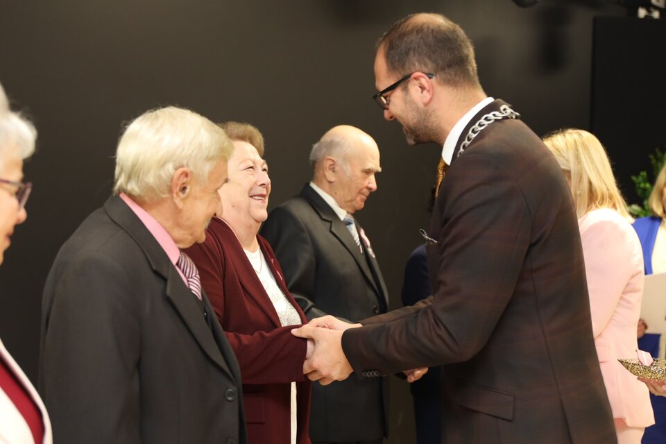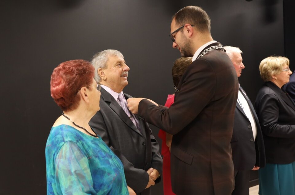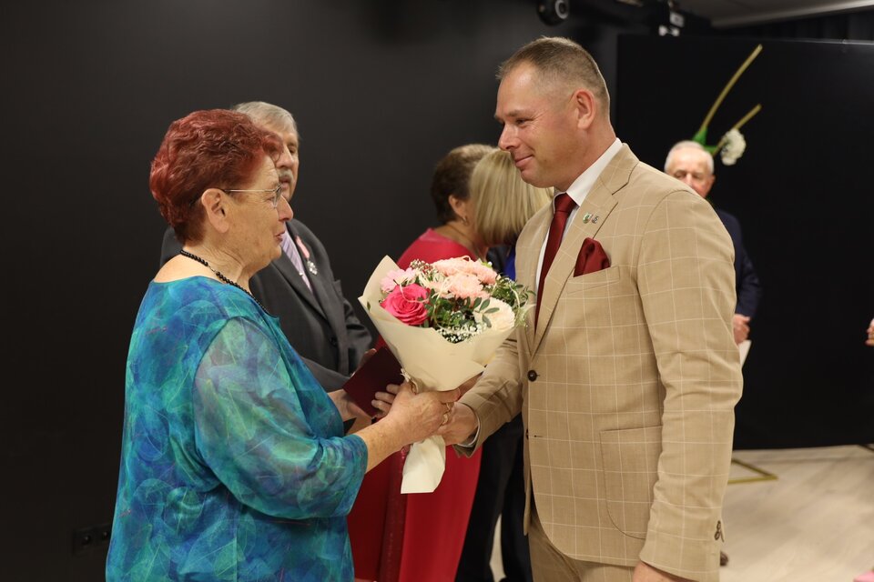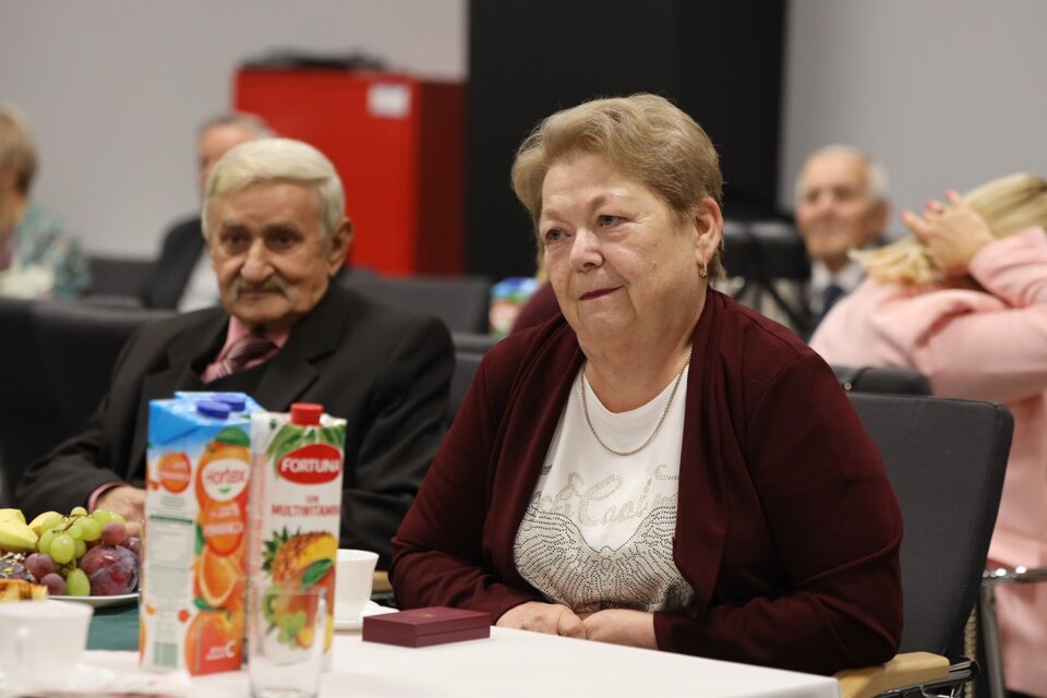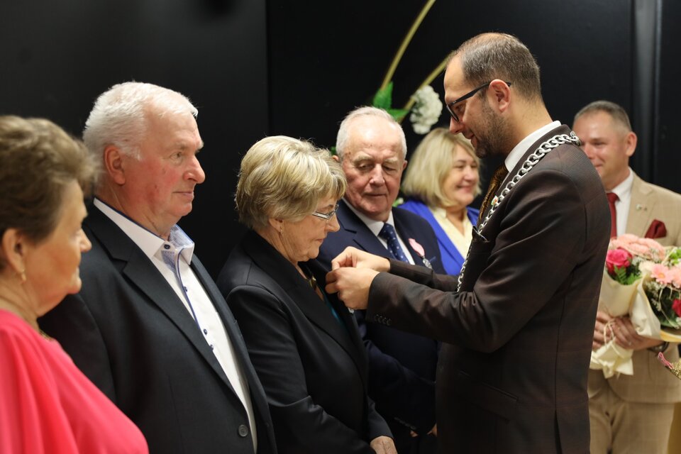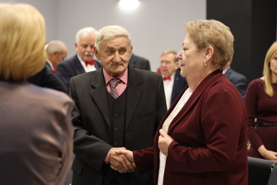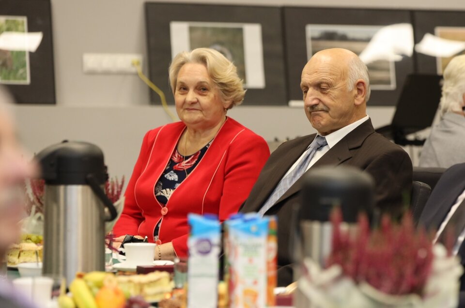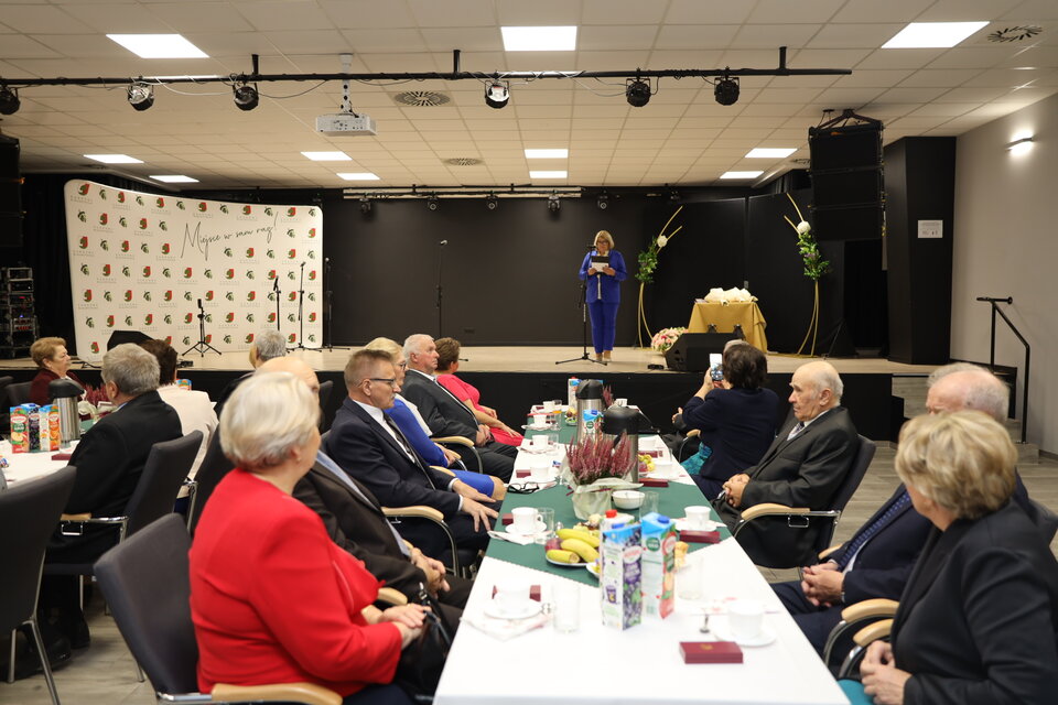 Uroczystość „Złotych Godów” odbyła się w sali Miejsko-Gminnego Ośrodka Kultury i była okazją do uhonorowania półwiecza wspólnego życia, wytrwałości i miłości małżonków.