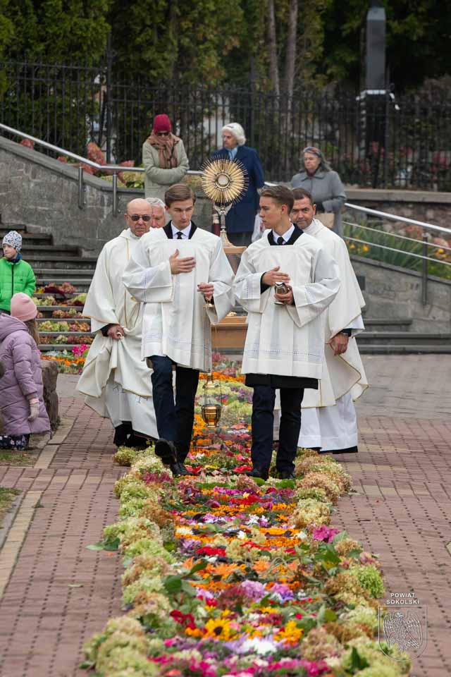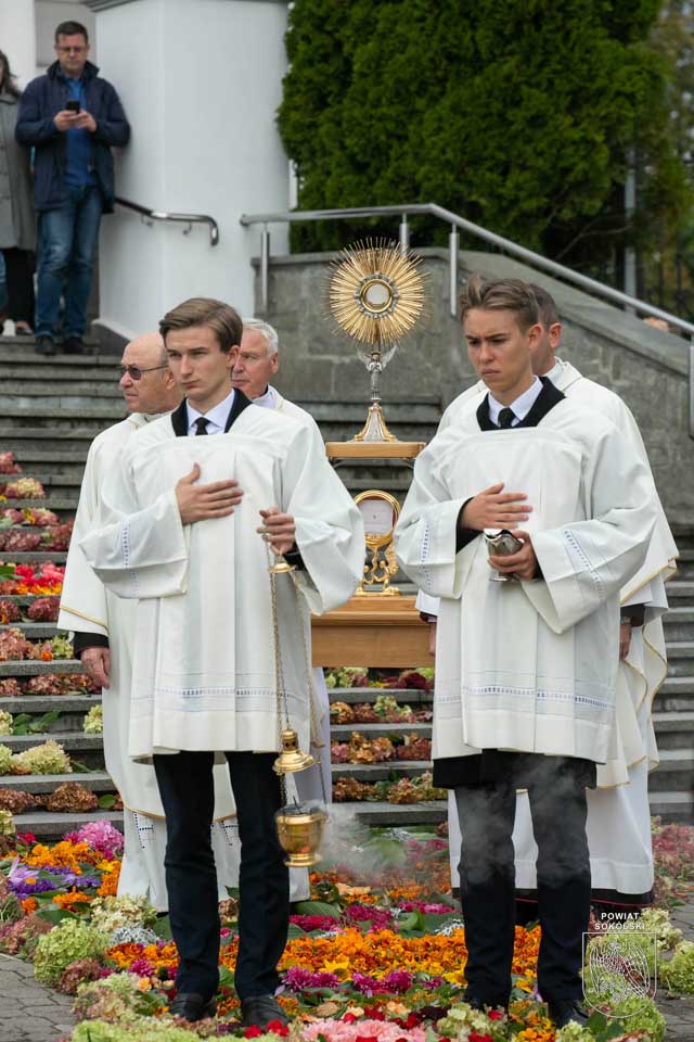 W słowach dziękczynienia nie zabrakło podziękowań skierowanych do wielu osób i instytucji, bez których przygotowanie uroczystości nie byłoby możliwe. Szczególne słowa wdzięczności padły wobec tych, którzy przygotowali kwiatowy dywan, po którym procesyjnie przeniesiono Najświętszy Sakrament i Cudowną Cząstkę z kościoła na ołtarz główny.