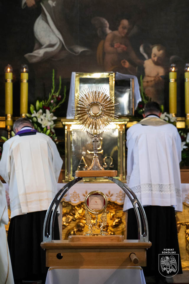 Kończąc kazanie podkreślił, że Eucharystia, jeśli jest przeżywana w prawdzie i pokorze, przemienia serce, otwiera na drugiego człowieka i prowadzi do miłości bliźniego. – Nie wstydźmy się klękać przed Najświętszym Sakramentem. Dziękujmy za cud w Sokółce, który Jezus uczynił nie po to, by nas zadziwić, ale byśmy mogli powtórzyć: Wierzę. Ty masz słowa życia wiecznego – zakończył.