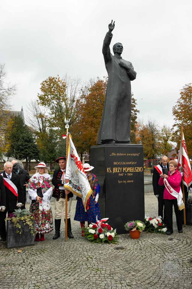 Obecny na uroczystości poseł Dariusz Piontkowski wspomniał, że komuniści, mordując błogosławionego księdza Jerzego Popiełuszkę, sięgnęli po te same brutalne metody, które stosowali już po wkroczeniu Armii Sowieckiej na nasze ziemie – chcieli zastraszyć ludzi i złamać w nich ducha wolności. Jak podkreślił, prawda ma jednak to do siebie, że zawsze powraca, niezależnie od propagandy, terroru i kłamstw.