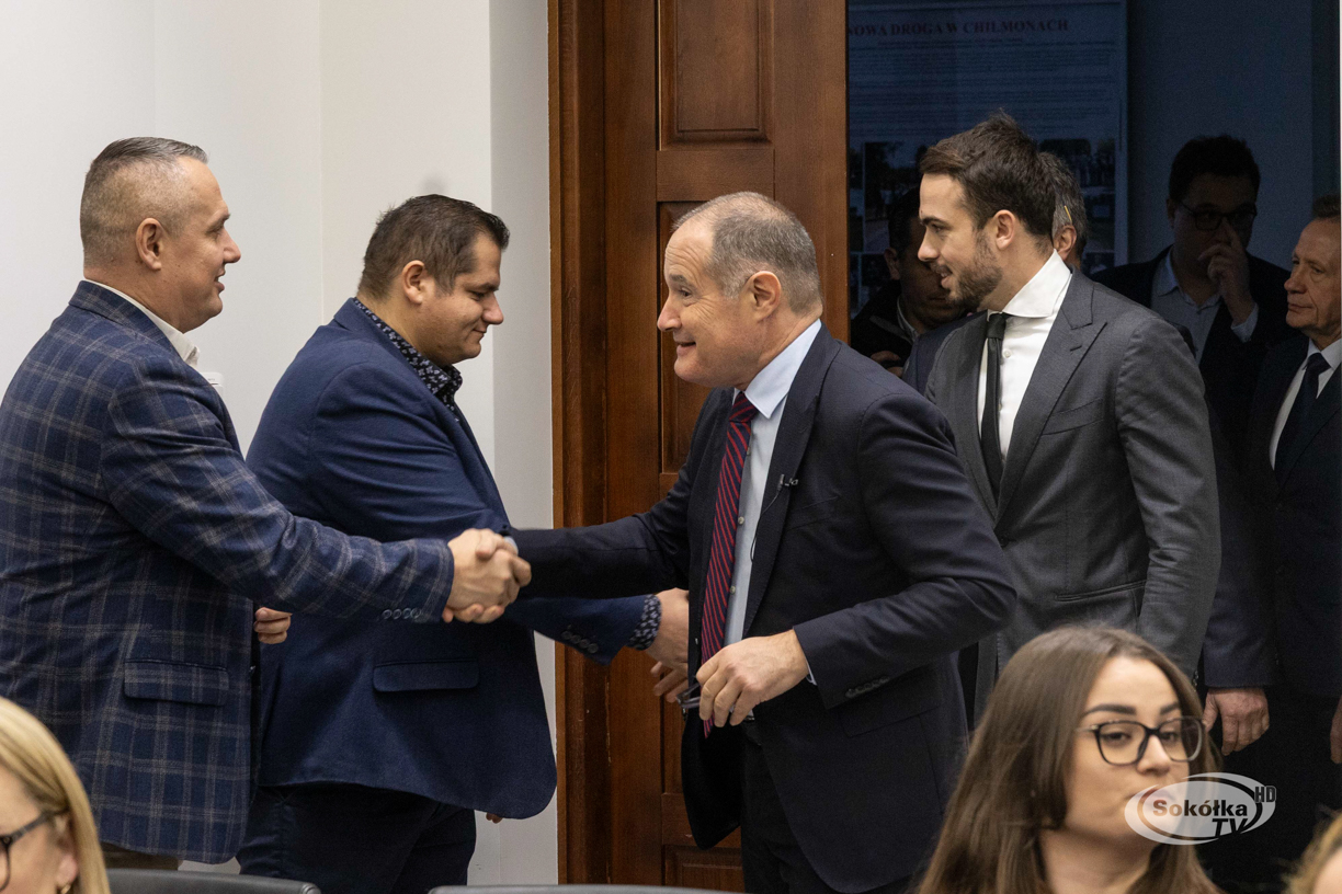 Łukasz Owsiejko, wicestarosta sokólski oraz Jerzy Białomyzy, członek Zarządu Powiatu Sokólskiego. Spotkanie poprowadził Tomasz Tolko, który w imieniu nieobecnego starosty sokólskiego