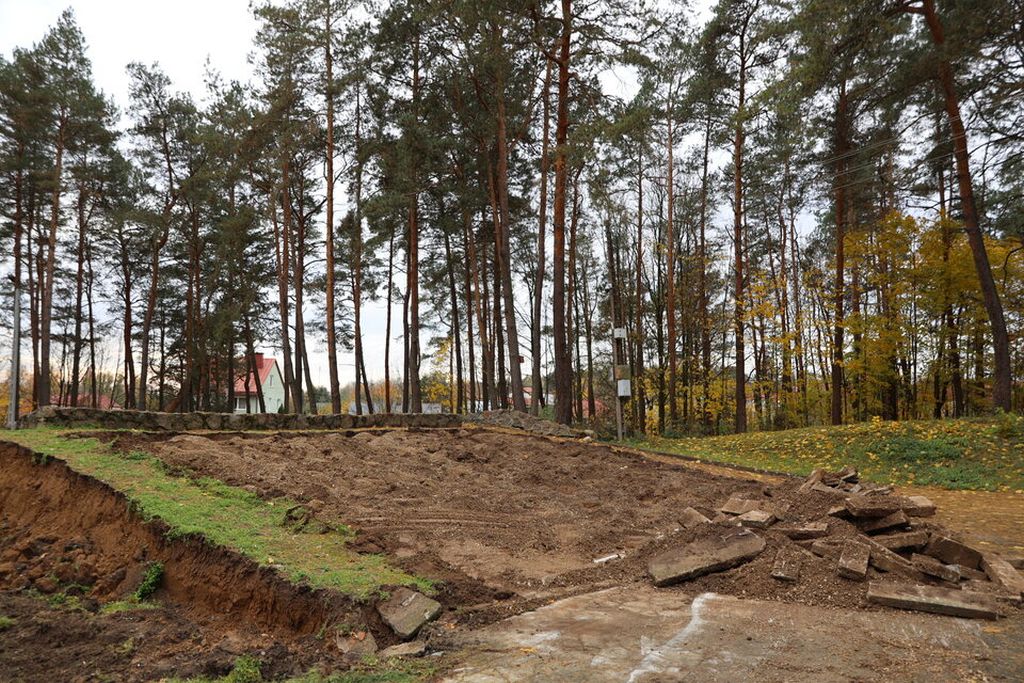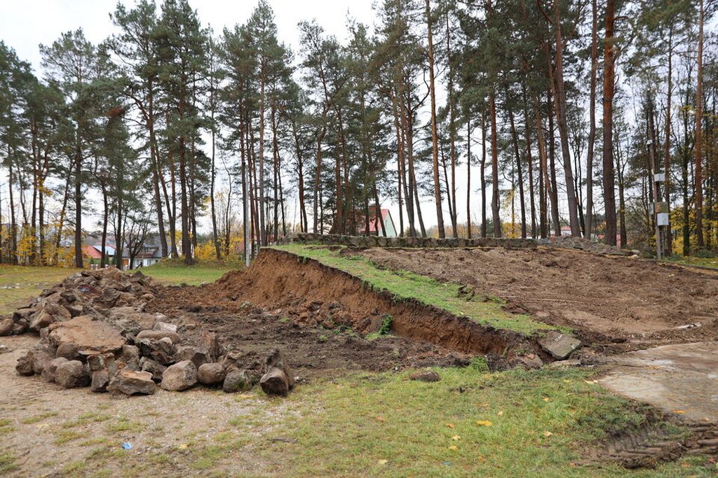 W ramach prac zostanie wykonany nowy utwardzony wjazd, a na placu ułożona zostanie kostka brukowa oraz płyty ażurowe. Obecnie rozebrano betonowy murek otaczający podwyższenie widowni. W planach jest także niwelacja terenu dotychczasowej widowni oraz montaż ławek.