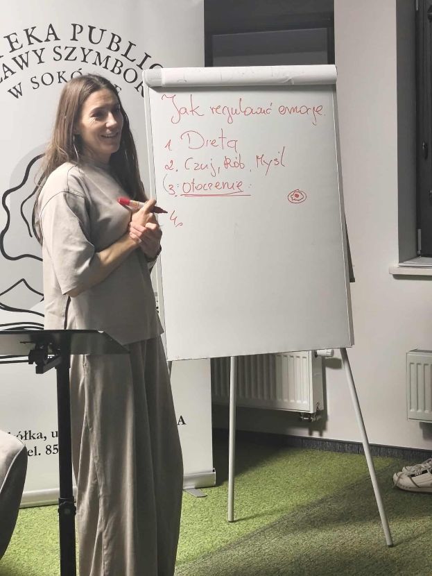 3 listopada w Bibliotece Publicznej im. Wisławy Szymborskiej w Sokółce odbył się wieczór pełen dobrej energii, refleksji i uważności. Podczas warsztatów ph. ,,Zdrowie zaczyna się w głowie-sekrety pozytywnego nastroju'', uczestnicy mieli okazję zatrzymać się na chwilę, wsłuchać w siebie i zastanowić, jak codzienne myśli wpływają na nasze samopoczucie. Rozmawiano o wdzięczności, uważności, pozytywnym nastawieniu oraz o tym, jak na co dzień dbać o dobrostan psychiczny i fizyczny.