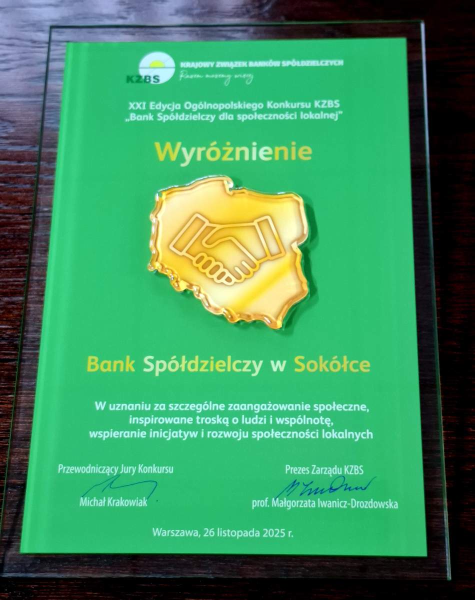 W gronie docenionych banków znalazł się Bank Spółdzielczy w Sokółce, który otrzymał wyróżnienie za szeroką działalność na rzecz lokalnej społeczności. Kapituła konkursowa podkreśliła zaangażowanie banku w liczne projekty społeczne oraz wkład w budowanie silnych więzi z mieszkańcami regionu.