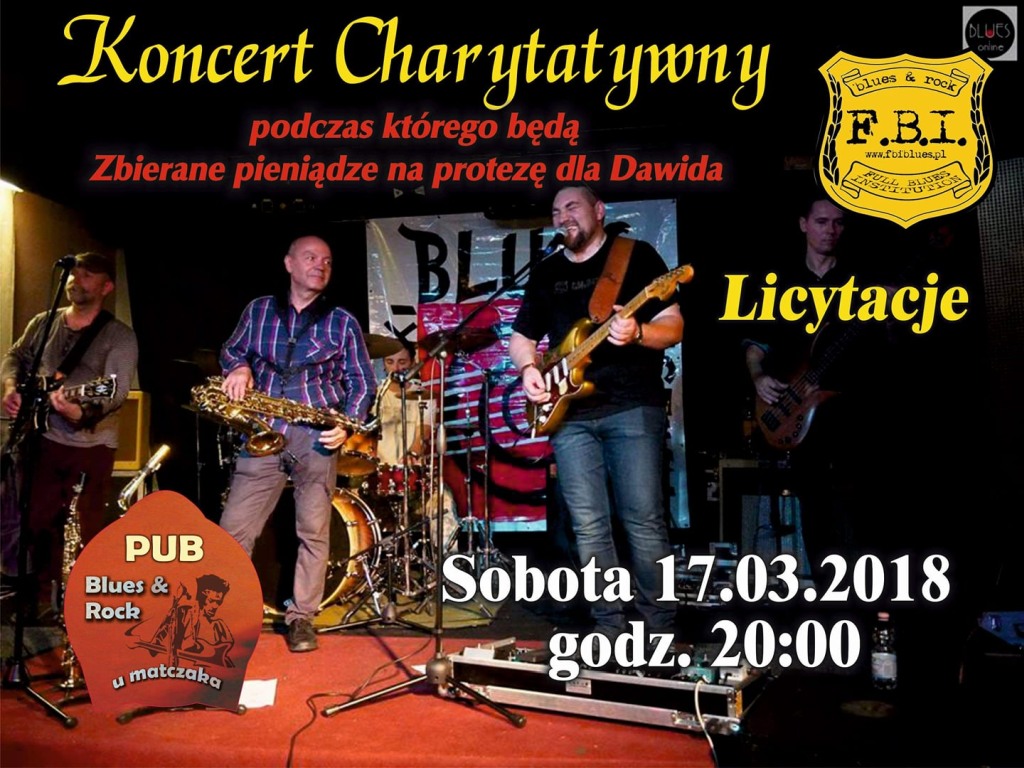 Zespół Blues & Rock F.B.I. zaprasza na swój koncert do Pub Blues & Rock u Matczaka w sobotę 17 marca o godzinie 20:00. Zapowiada się dawka dobrego brzmienia. W trakcie koncertu odbędzie się zbiórka pieniędzy na ww. cel.