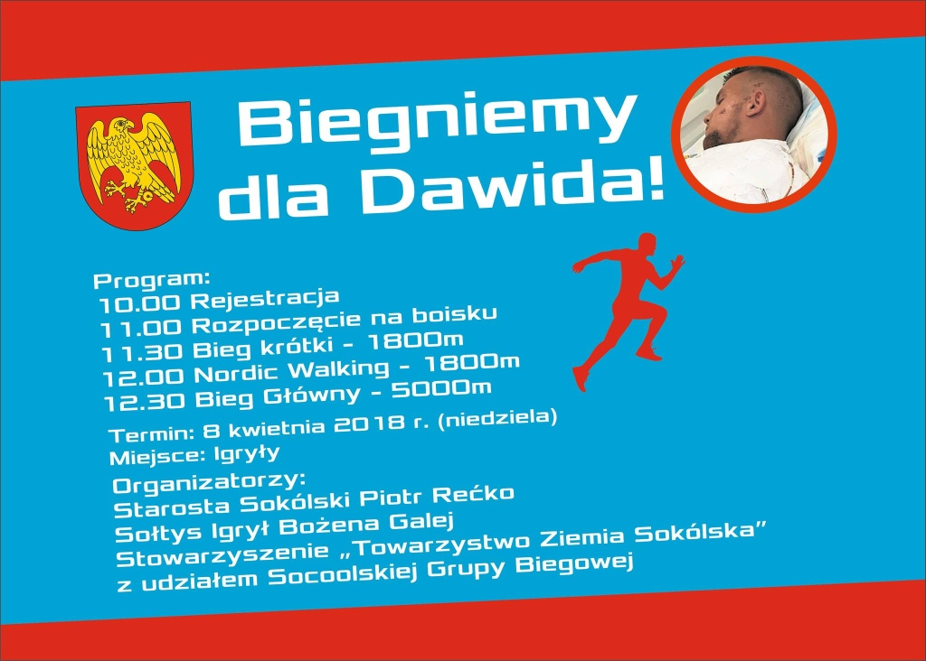 Powiatowy Bieg Charytatywny to kolejna okazja aby pomóc Dawidowi. 8 kwietnia w Igryłach odbędą się zmagania biegaczy w których mogą wziąć udział wszyscy mieszkańcy powiatu sokólskiego.