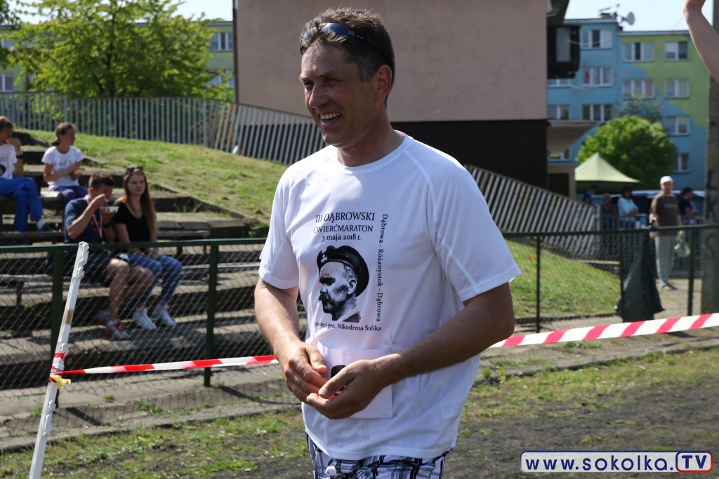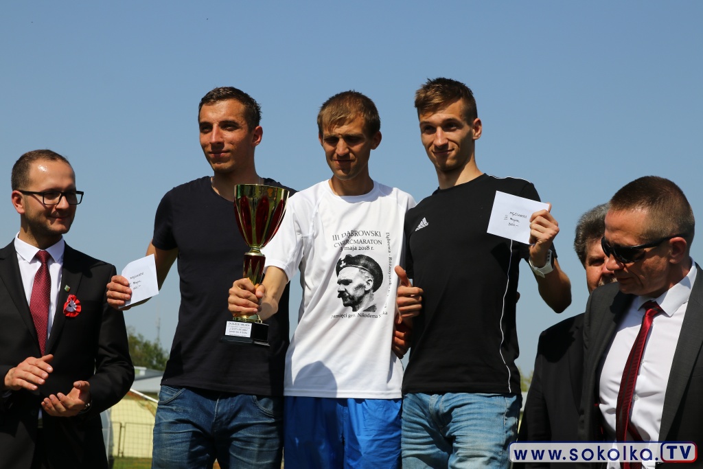 Pierwszymi na mecie wśród biegaczy z Dąbrowy byli Jakub Boruch oraz Jakub Świetlicki. Wśród zawodników z czasem do 1:30 min wylosowano też nagrodę pieniężną w wysokości 1000zł, którą zdobyła pani Urszula Białomyzy.