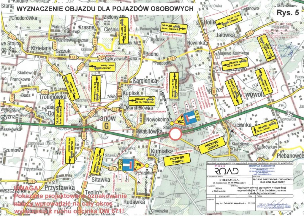 Od 28 czerwca trwa przebudowa dwóch przepustów w ciągu drogi wojewódzkiej Nr 671 k/m koło miejscowości Studzieńczyna, gmina Janów wraz z niezbędnymi dojazdami.
