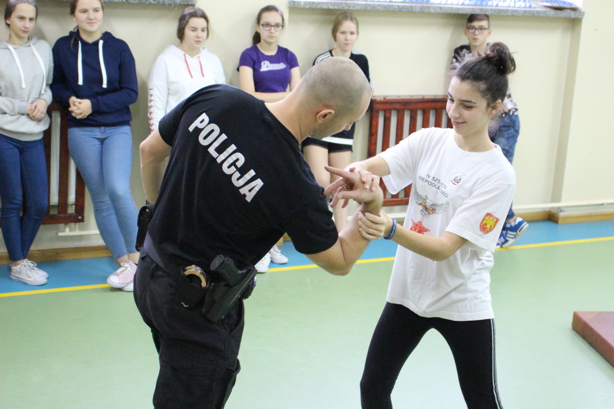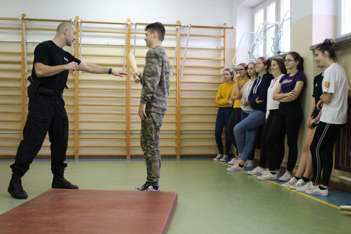Szkolenie z zakresu samoobrony, zorganizowane zostało w ramach działań promujących służbę w Policji. Zajęcia praktyczne poprowadził policjant zajmujący się szkoleniem sokólskich policjantów w technikach interwencji. Wśród przećwiczonych sytuacji była m.in. obrona przed atakiem kijem, wyswobodzenie się z chwytu za włosy czy wyrwanie się z chwytu frontalnego za ubranie. Ponadto, po zajęciach fizycznych, policjanci udzielali wszystkim zainteresowanym informacji dotyczącej doboru do służby.