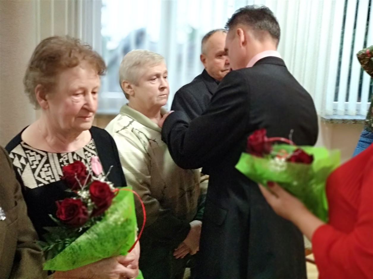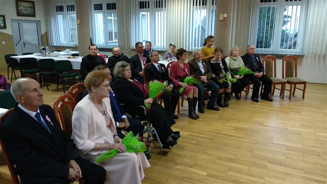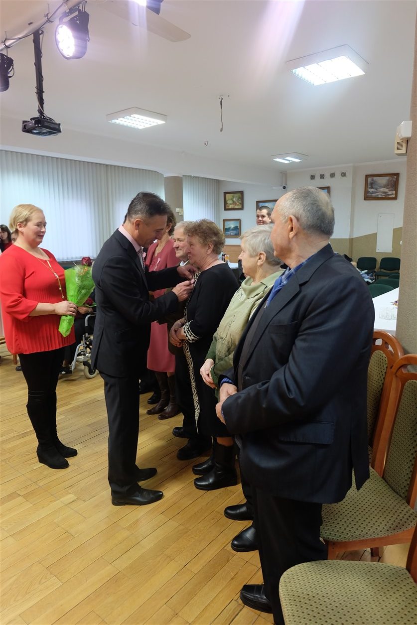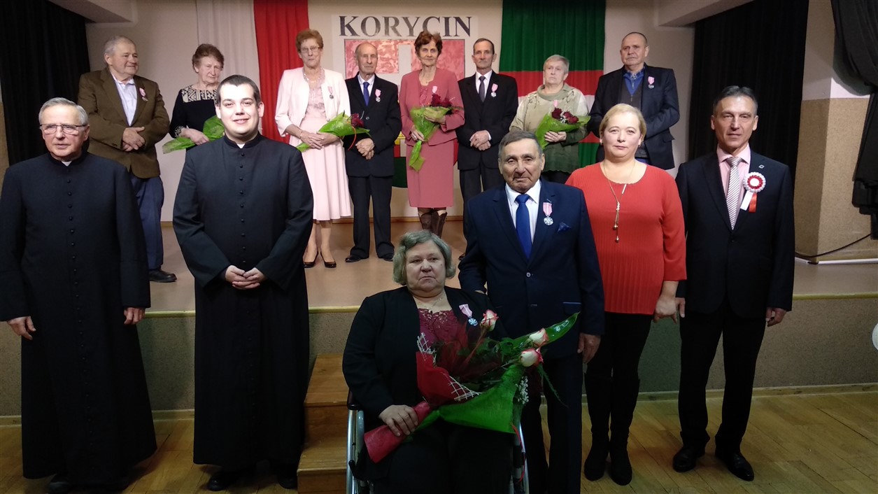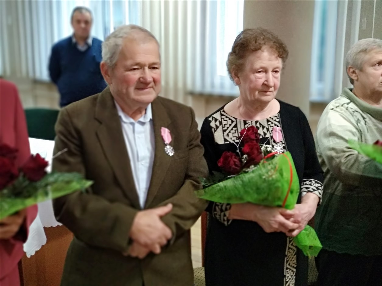 Z rąk Wójta pary otrzymały przyznane przez Prezydenta Rzeczypospolitej Polskiej Medale za Długoletnie Pożycie Małżeńskie. Zabrzmiał Marsz Mendelsona, na dźwięk którego zakręciła się łezka w oku nawet najmłodszym gościom. Potem przyszedł czas na życzenia, symboliczną lampkę szampana i wspólne odśpiewanie „sto lat”. Dodatkowo klimat tej uroczystości uświetnił występ chóru „Epoka” z Korycina.