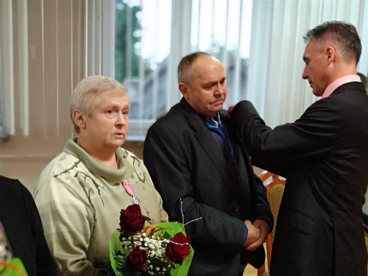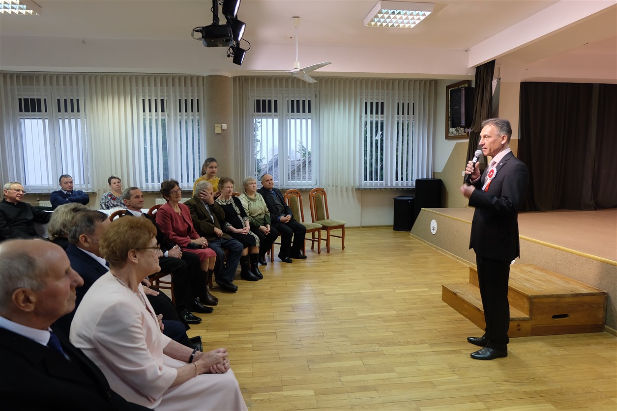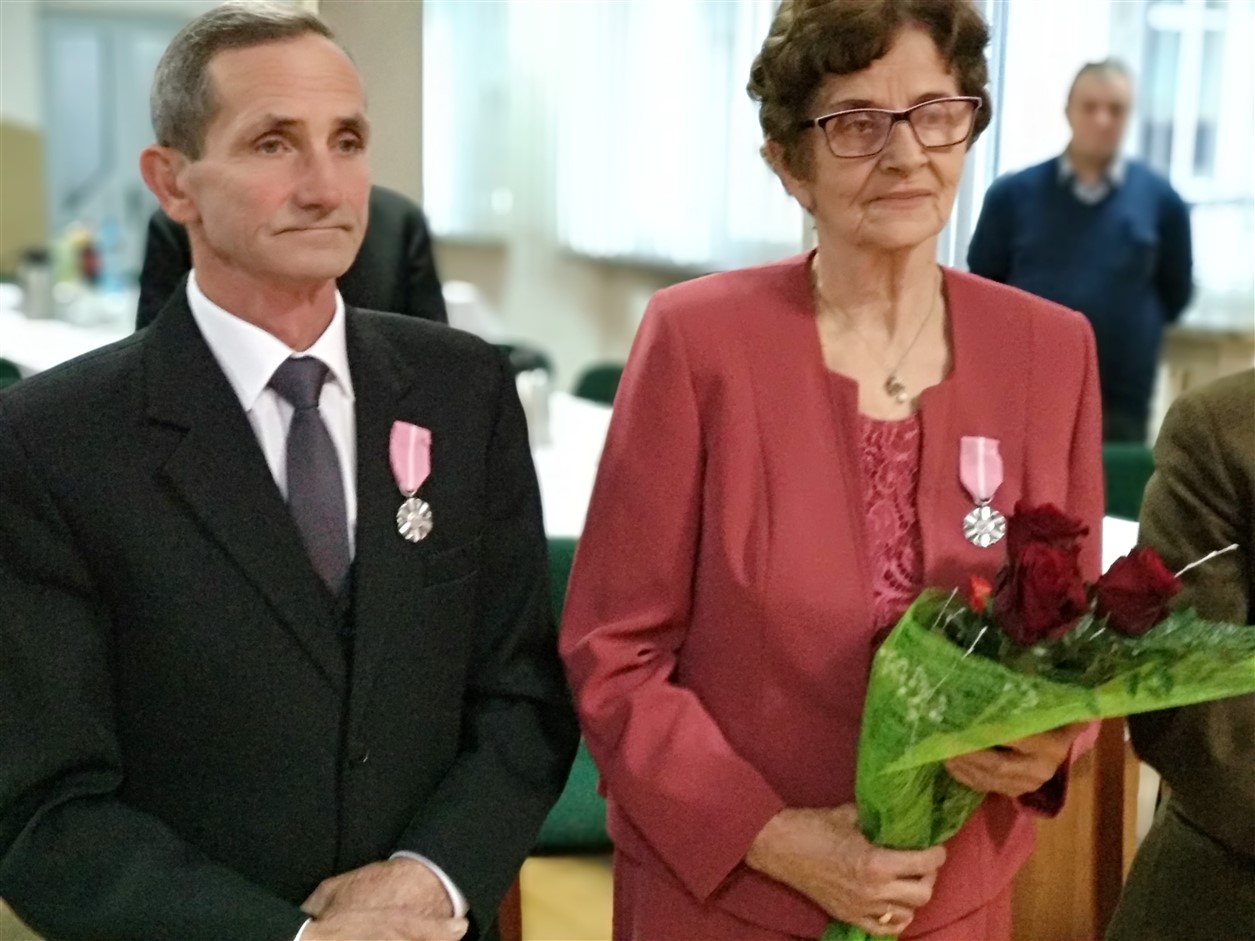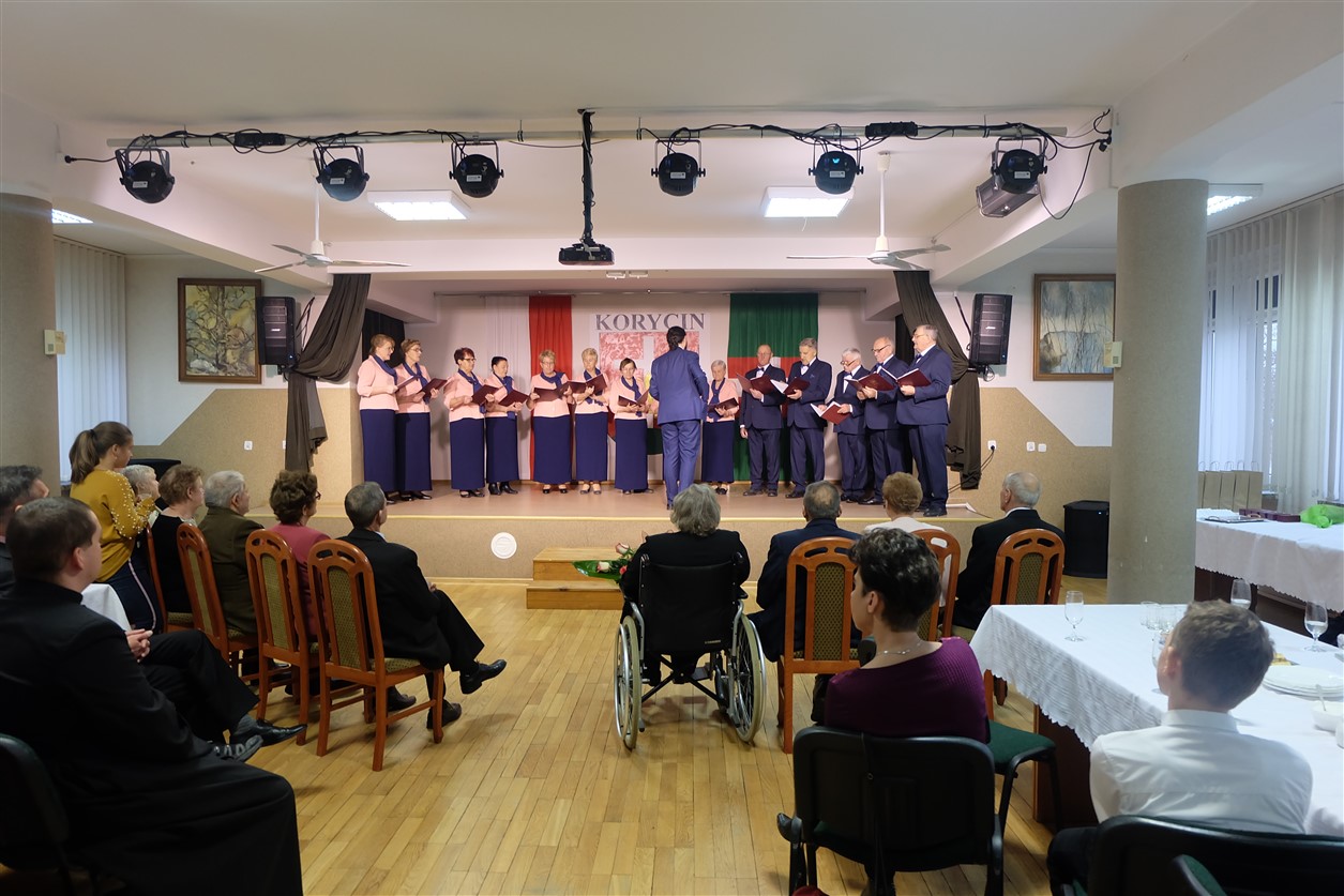 Z rąk Wójta pary otrzymały przyznane przez Prezydenta Rzeczypospolitej Polskiej Medale za Długoletnie Pożycie Małżeńskie. Zabrzmiał Marsz Mendelsona, na dźwięk którego zakręciła się łezka w oku nawet najmłodszym gościom. Potem przyszedł czas na życzenia, symboliczną lampkę szampana i wspólne odśpiewanie „sto lat”. Dodatkowo klimat tej uroczystości uświetnił występ chóru „Epoka” z Korycina.