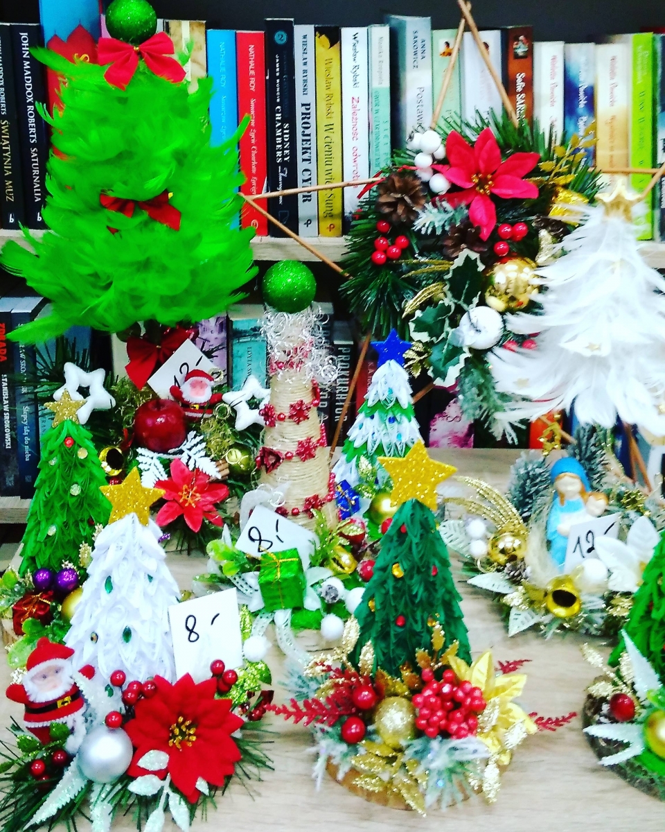 Biblioteka Publiczna w Sokółce zaprasza serdecznie na kiermasz ozdób świątecznych wytwarzanych przez podopiecznych Warsztatów Terapii Zajęciowej. Rękodzieło artystyczne od dawna jest sprawdzoną formą rehabilitacji przez pracę i sztukę. Spod rąk podopiecznych wyszły przepiękne ozdoby Bożonarodzeniowe.