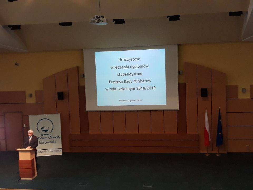 12 grudnia 2018 roku w sali konferencyjnej Podlaskiego Urzędu Wojewódzkiego w Białymstoku odbyła się uroczystość wręczenia dyplomów Prezesa Rady Ministrów.