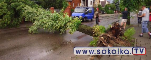 Tego dnia mieliśmy do czynienia również z bardzo silnym wiatrem. Zerwane gałęzie i połamane konary drzew na jezdni. Strażacy do takich akcji wyjeżdżali 6 razy. Interweniowali w m. Bierwicha, Nowe Stojło, Słójka, Studzieńczyna, a także w Sidrze i w Sokółce na ul. Grodzieńskiej.