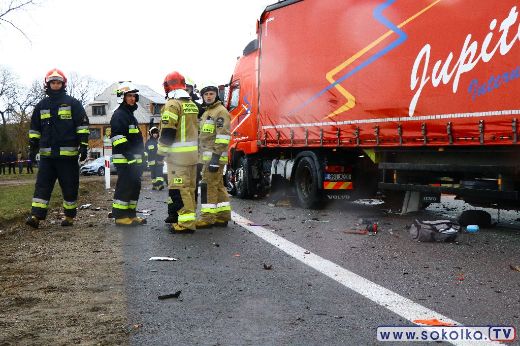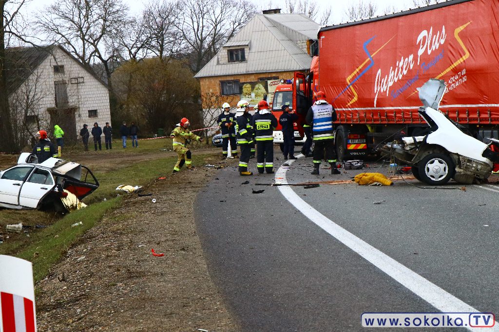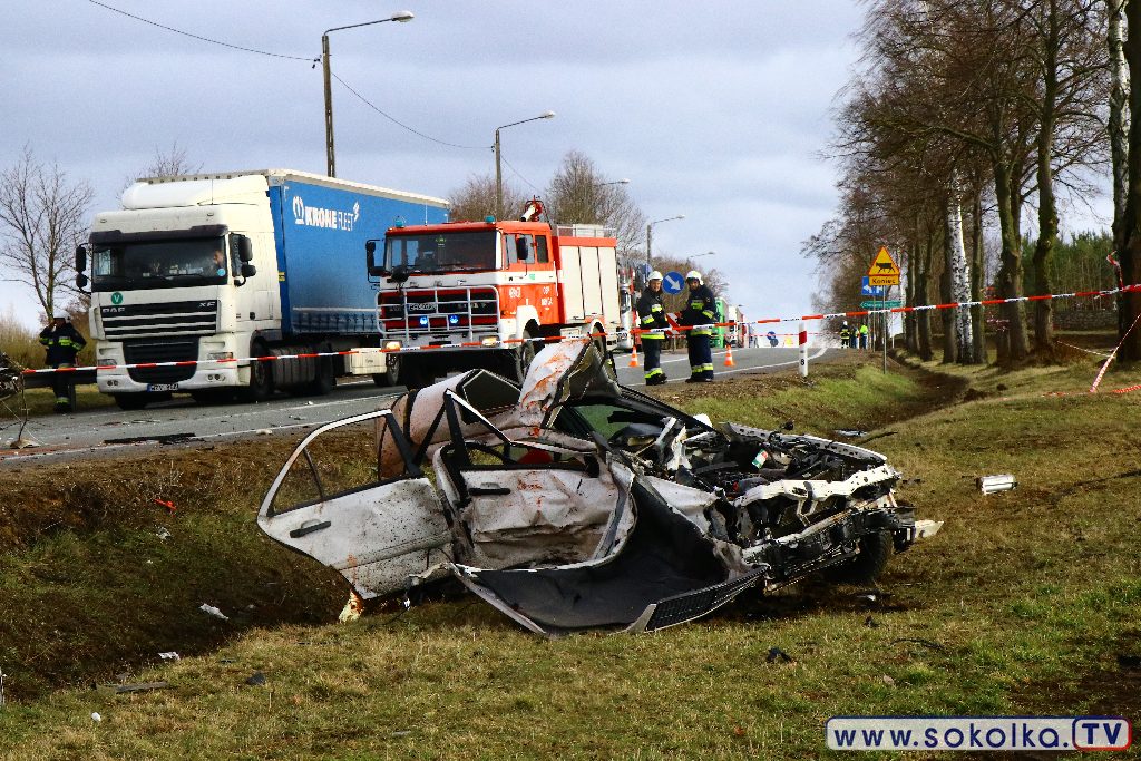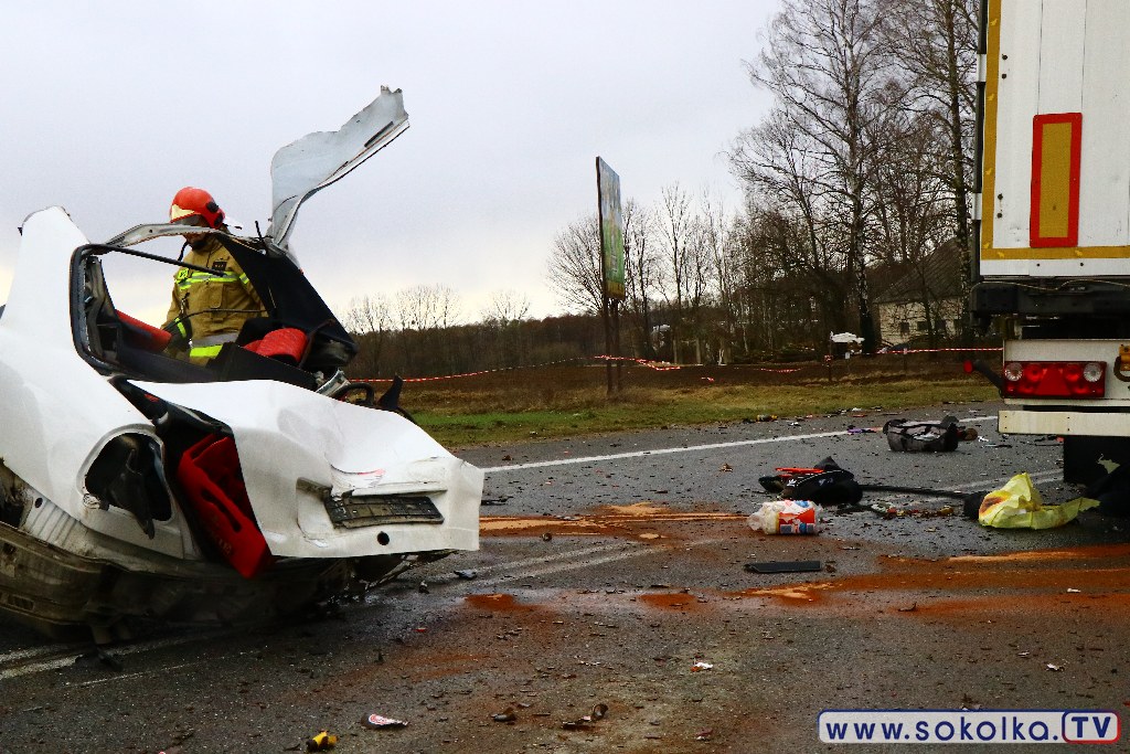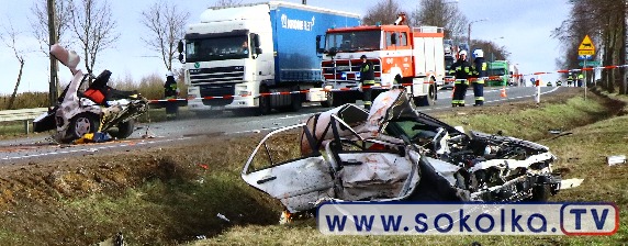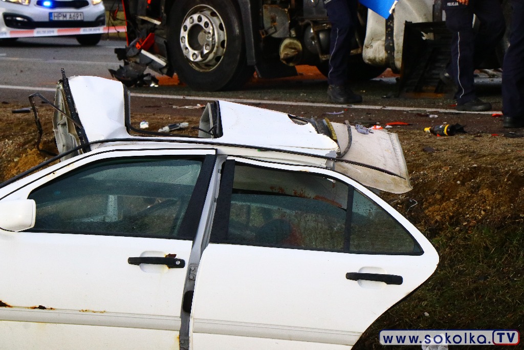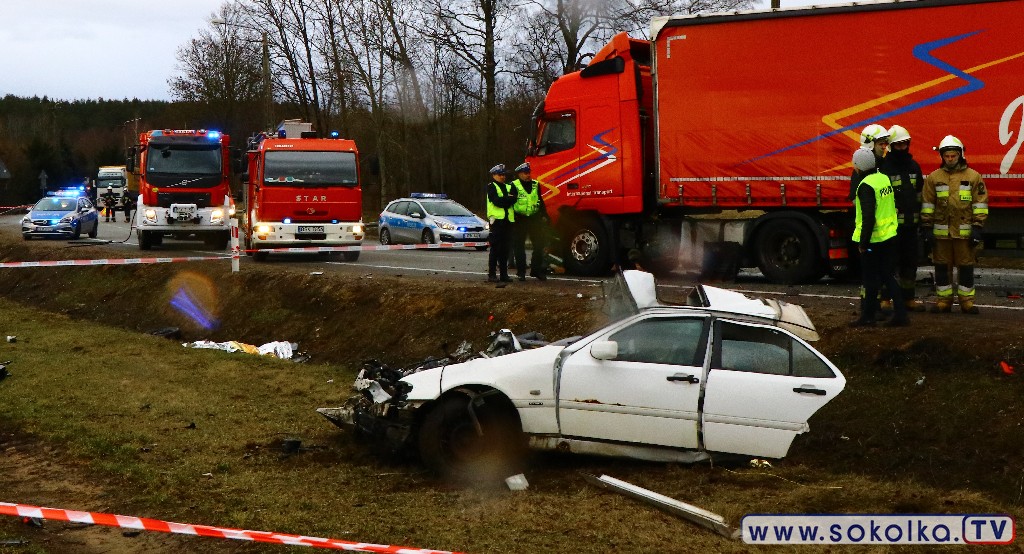 Osobowy mercedes zderzył się z TIR-em. Kierowcy ciężarówki nie stało się nic. Dwaj z pięciu pasażerów mercedesa zginęło na miejscu, trzech trafiło do szpitala. Tuż za zabudowaniami wsi Poświętne, na łuku drogi przed cmentarzem,. zderzyło się auto osobowe z ciężarówką. W wyniku tego zdarzenia dwaj z pięciu pasażerów mercedesa zginęli na miejscu, trzech trafiło do szpitala. To młodzi ludzie z gminy Dąbrowa Białostocka. Z informacji na miejscu wypadku udało się ustalić, że część z pasażerów pochodzi z Miedzianowa.