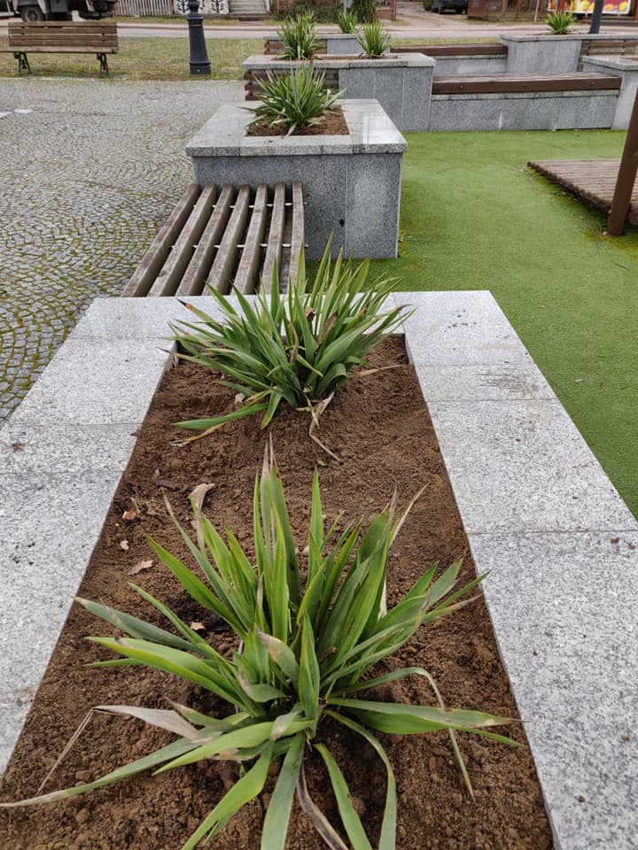 W tym samym czasie na Rynku Miejskim zasadzono w donicach egzotyczne juki, wraz ze wzrostem temperatury obok nich mają pojawić się również róże.