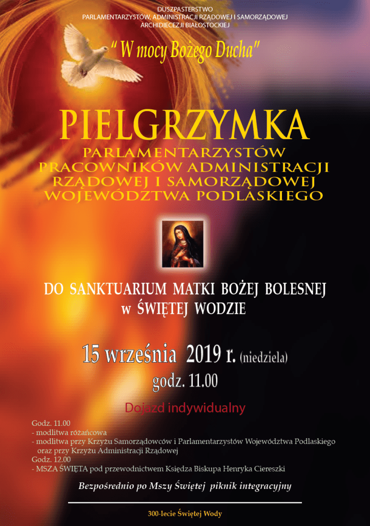 W Świętej Wodzie 15 września 2019r odbędzie się Pielgrzymka parlamentarzystów, pracowników administracji rządowej i samorządowej województwa podlaskiego.