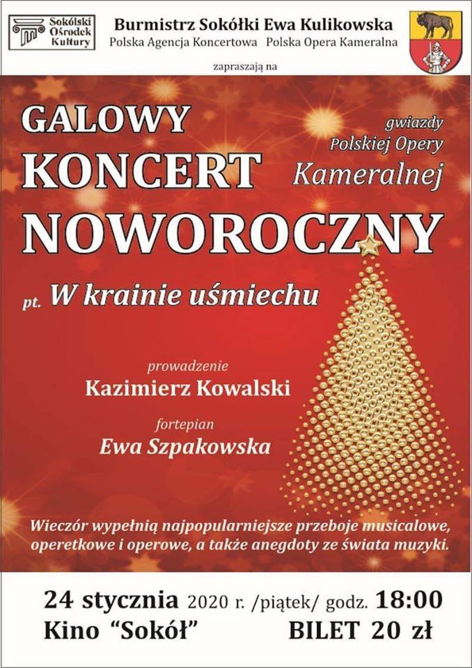 W Sokółce 24 stycznia (w piątek) o godz.18:00 w kinie "Sokół"odbędzie się Galowy Koncert Noworoczny.