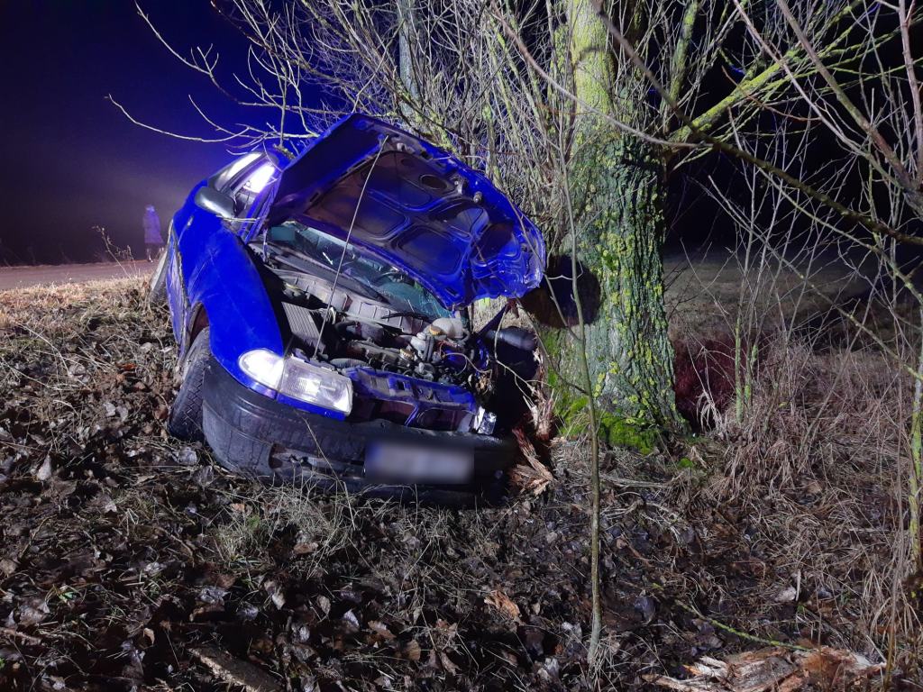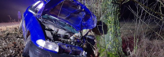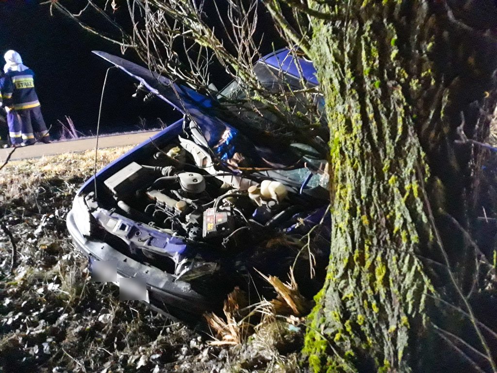 Samochód osobowy marki Opel, w którym podróżowały dwie osoby wypadł z drogi i uderzył w drzewo. Działania strażaków polegały na zabezpieczeniu miejsca zdarzenia, odłączeniu źródła zasilania oraz pomocy ZRM w ewakuacji poszkodowanych.
