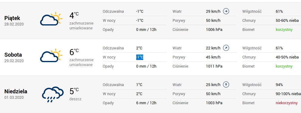 Od piątku do soboty czeka nas małe zachmurzenie z przejaśnieniami. Termometry wskażą od 5°C do 6°C.