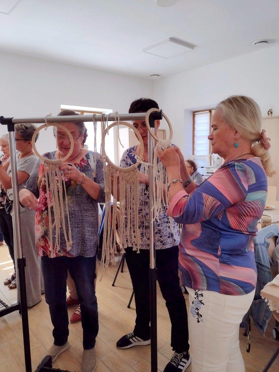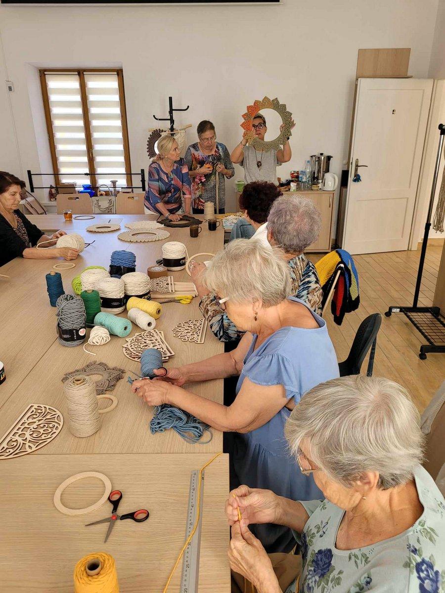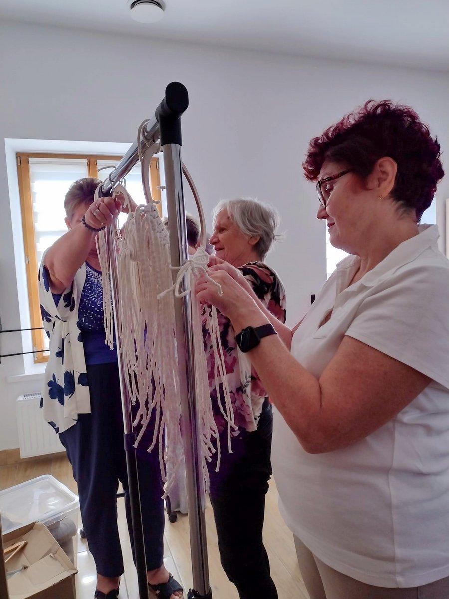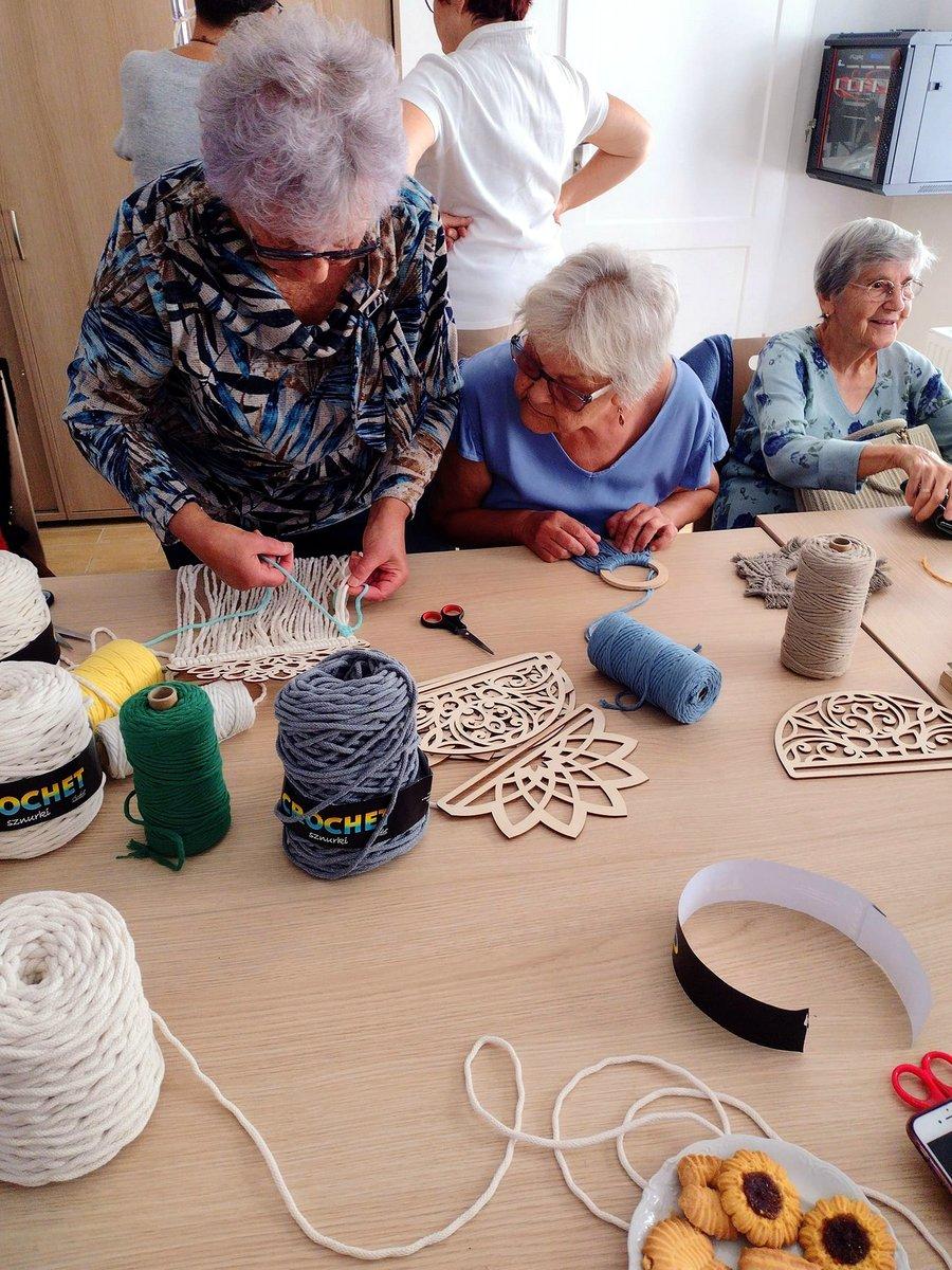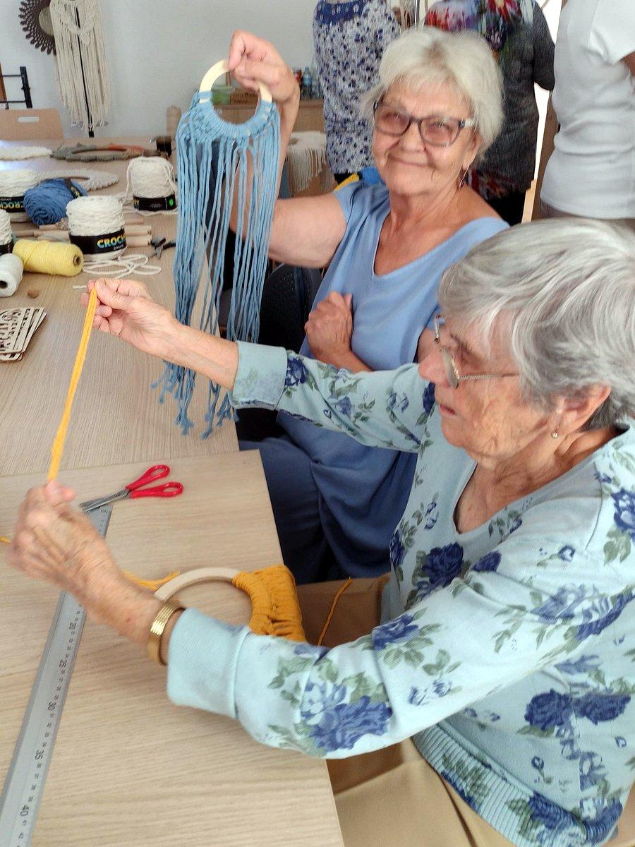 Natomiast na ostatnich zajęciach zapoznali się ze sztuką makramy, sztukę wiązania sznurków, bez użycia igieł, drutów lub szydełka. Technika wiązania przedostała się do Europy ze starożytnej Asyrii i Babilonii. Przy odrobinie pomocy pani Elwiry Miśkiewicz samodzielnie wpletli mandale.