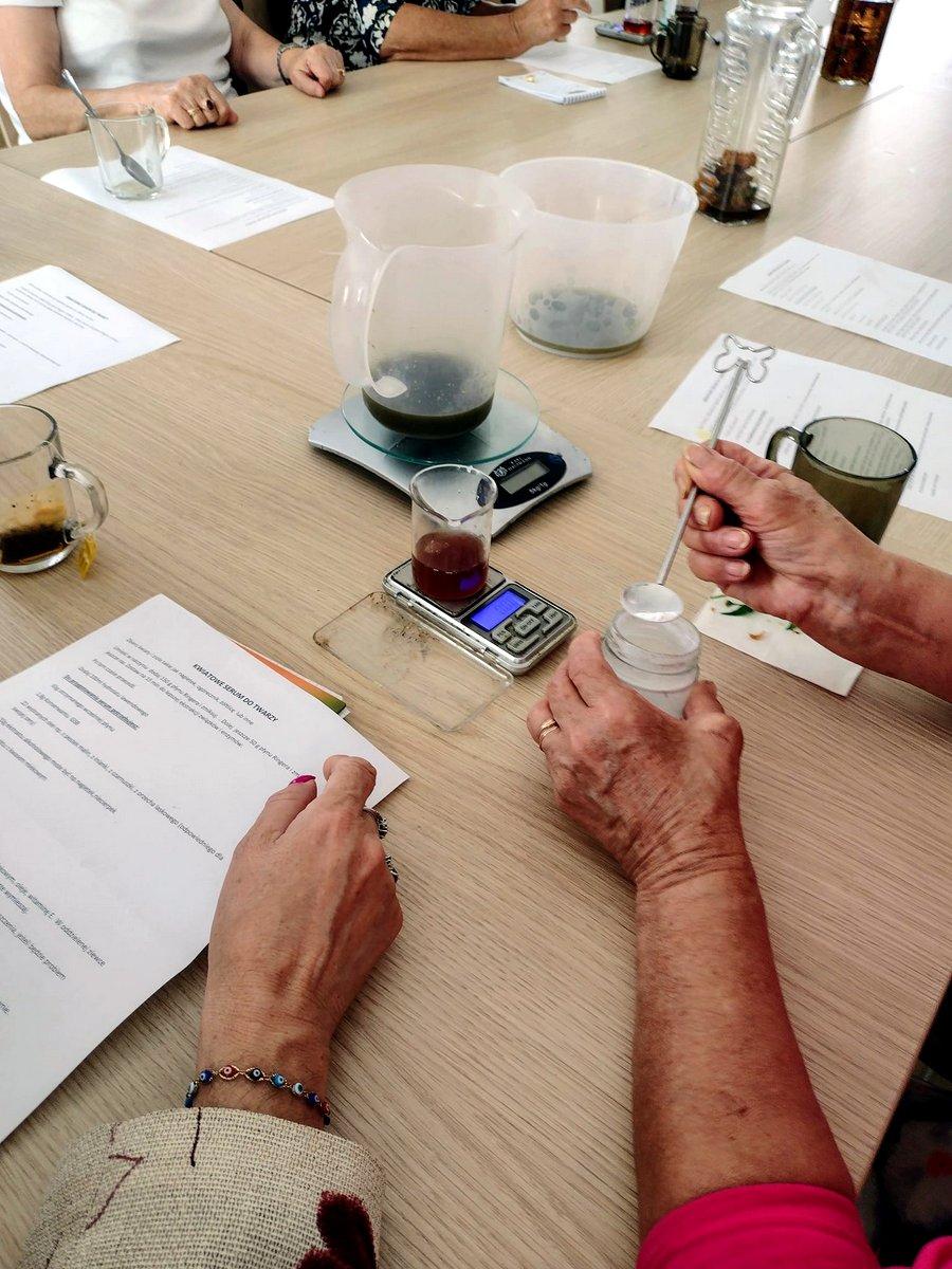 W trakcie pierwszego działania uczestnicy uszczknęli odrobinę wiedzy z zielarstwa. Zioła towarzyszyły człowiekowi od zawsze, a ich wykorzystywanie w kulinariach i kosmetyce należy do daleko sięgającej tradycji. Pod okiem pani Agnieszki Prymaka stworzone zostało serum odżywczo-odmładzające.