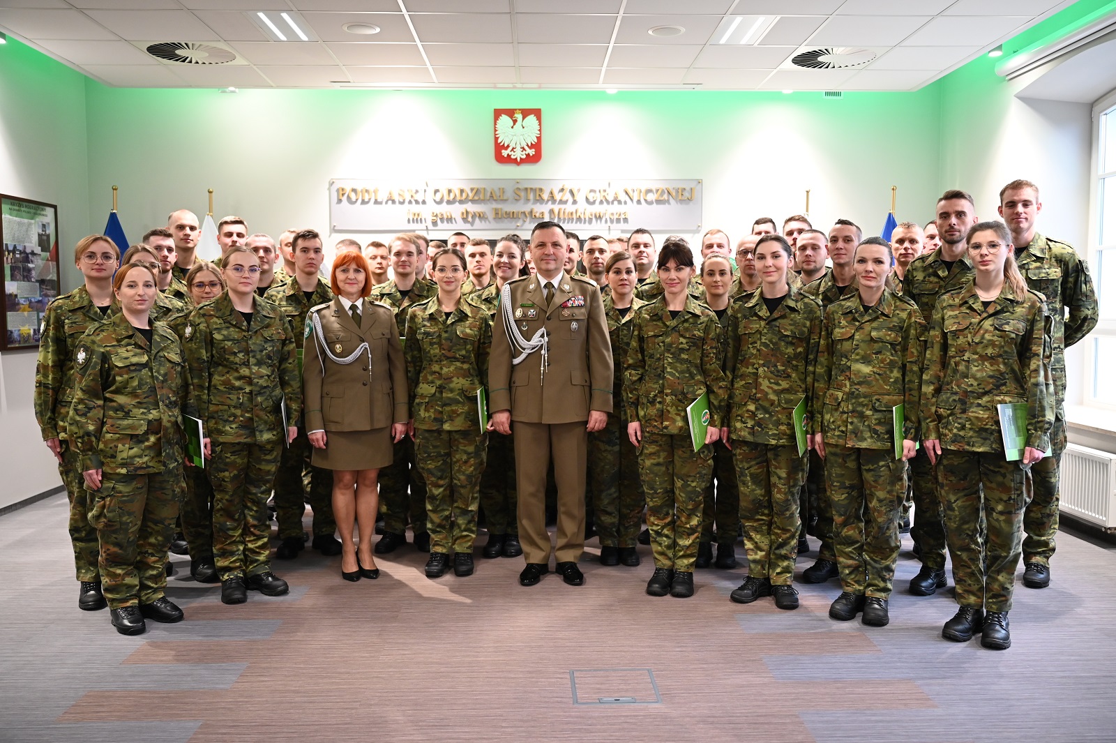 22 stycznia br. w Sali Tradycji Komendy Podlaskiego Oddziału Straży Granicznej miała miejsce uroczystość wręczenia aktów mianowań na stopień kaprala Straży Granicznej. Z rąk Komendanta Oddziału, w obecności przedstawicieli kadry kierowniczej, uroczyście odebrało je 45 funkcjonariuszy Straży Granicznej, ale w sumie awans na pierwszy w korpusie podoficerów stopień po ukończonym kursie otrzymało 58 osób.
