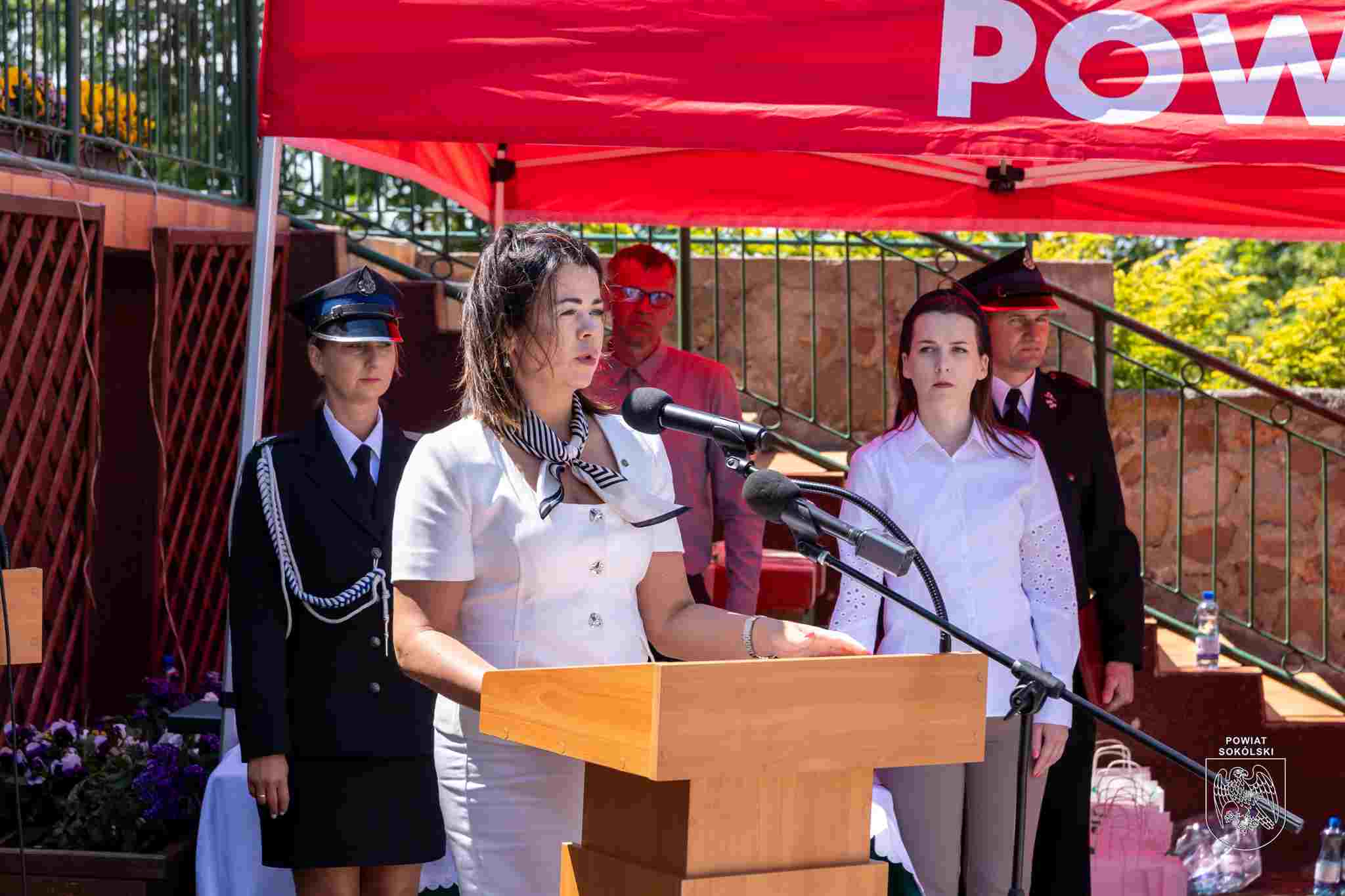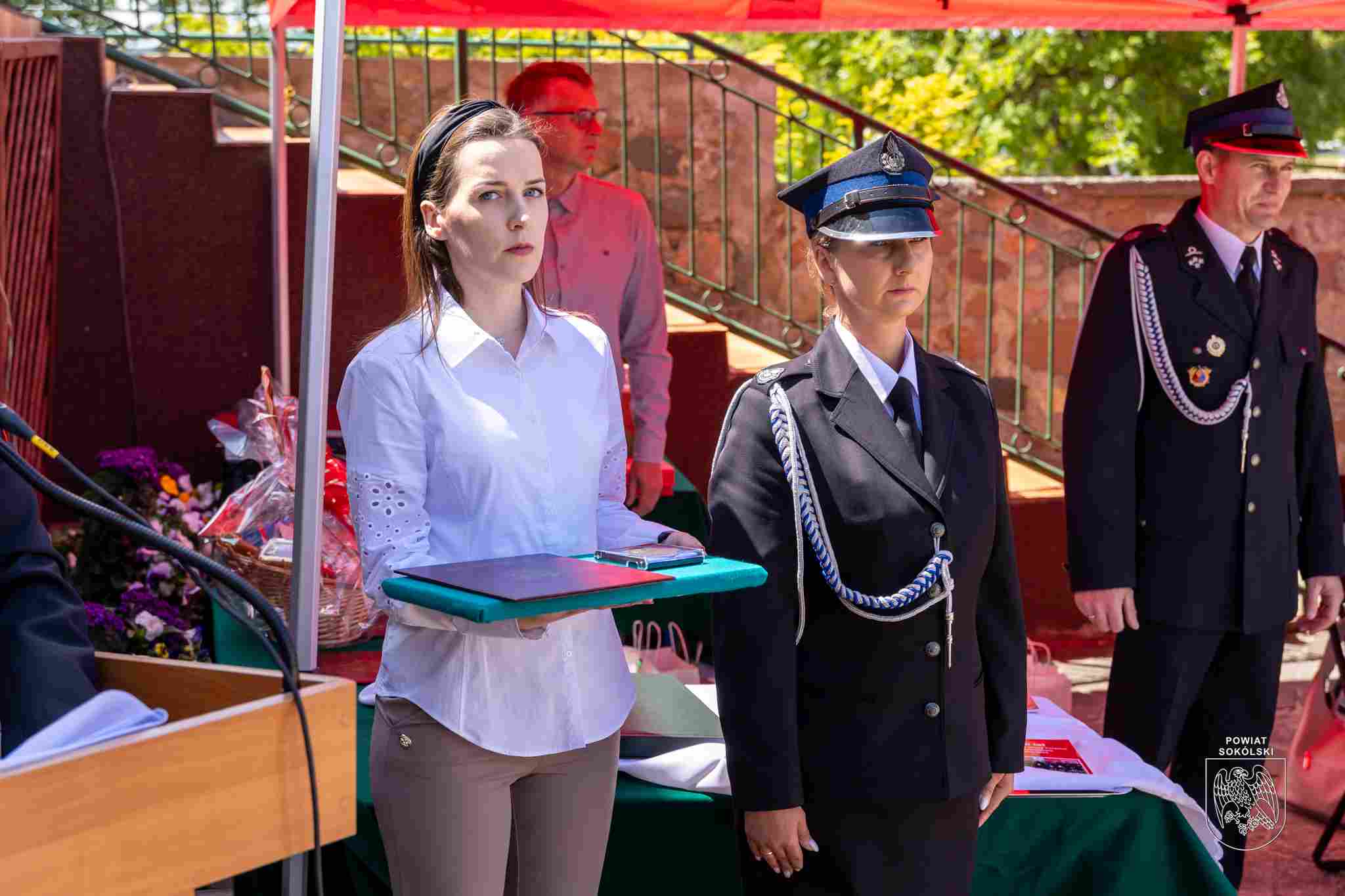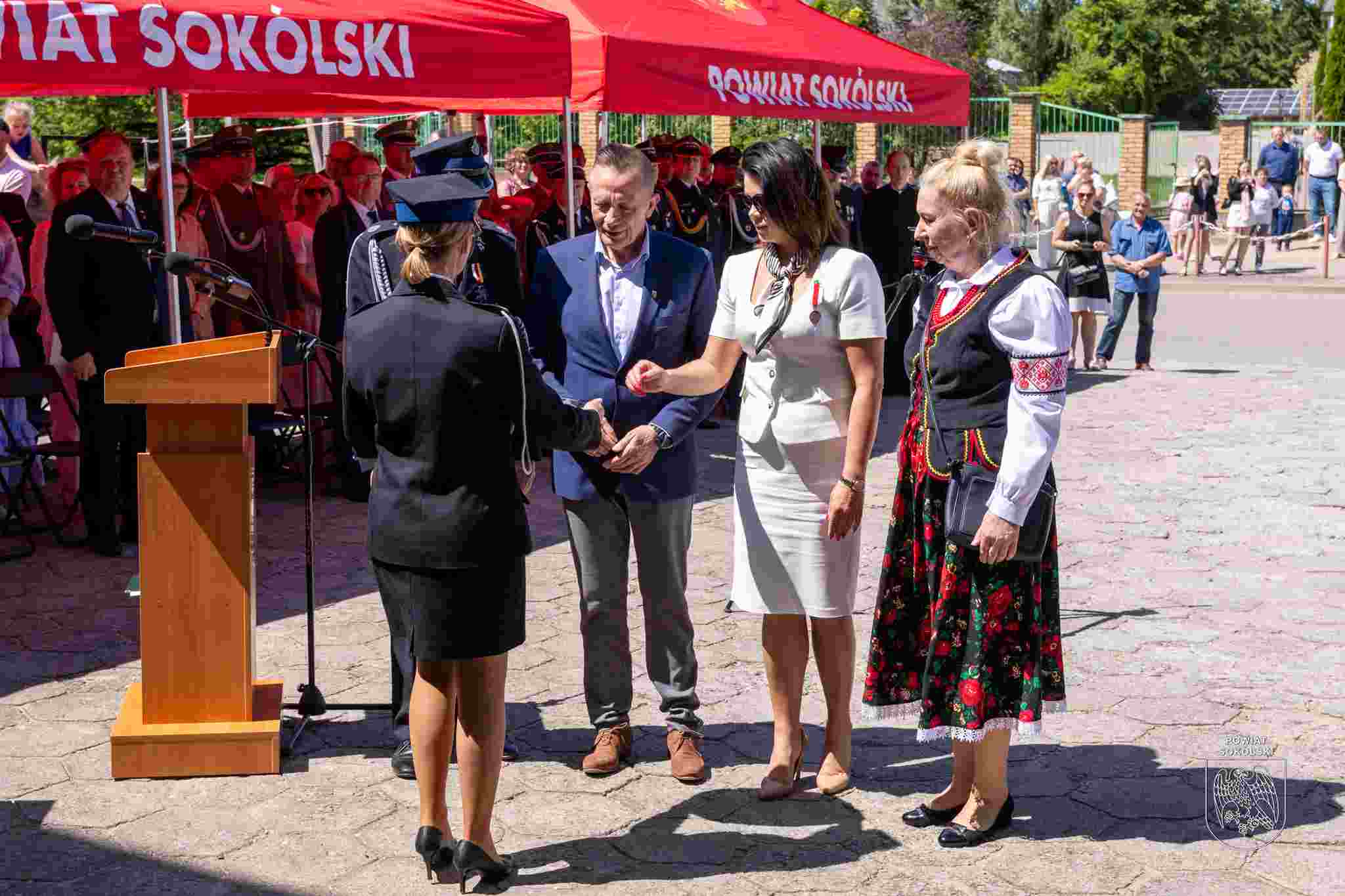 List od Podlaskiego Komendanta Wojewódzkiego PSP w Białymstoku odczytał jego zastępca – st. bryg. Grzegorz Lisowski, a obecna na uroczystości Wiesława Burnos, wicemarszałek województwa przekazała pamiątkowy grawerton od marszałka i Zarządu Województwa Podlaskiego.