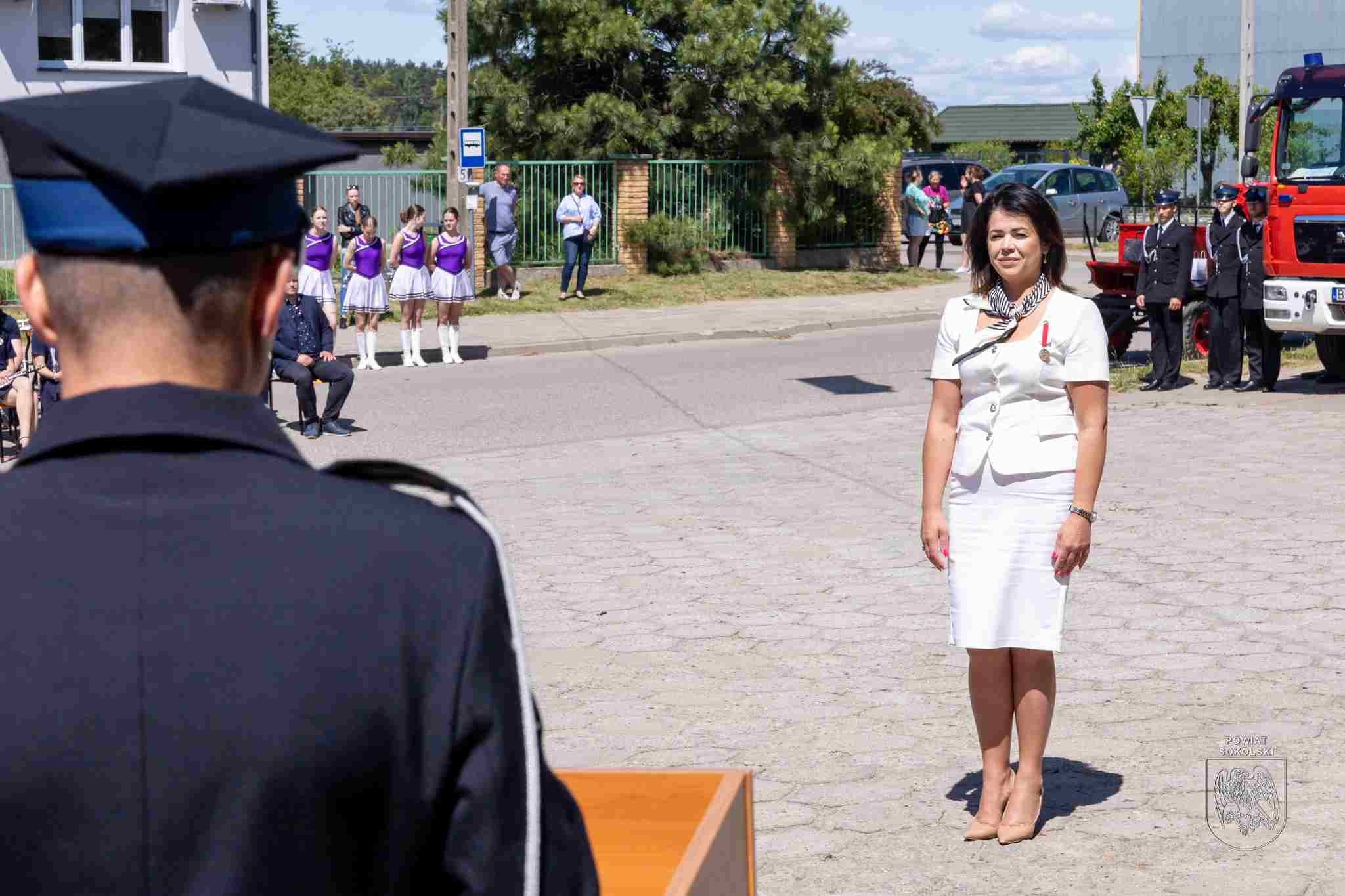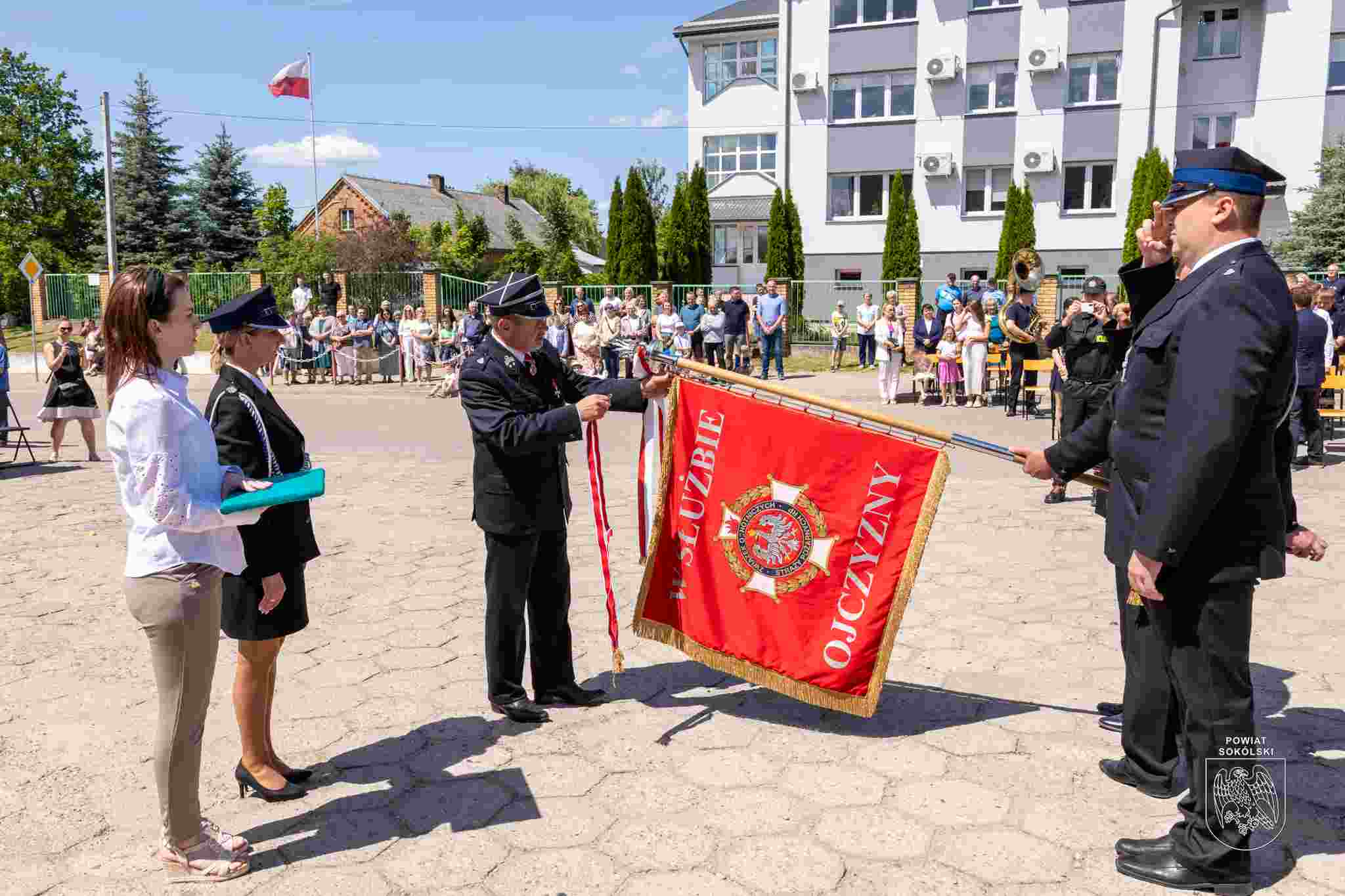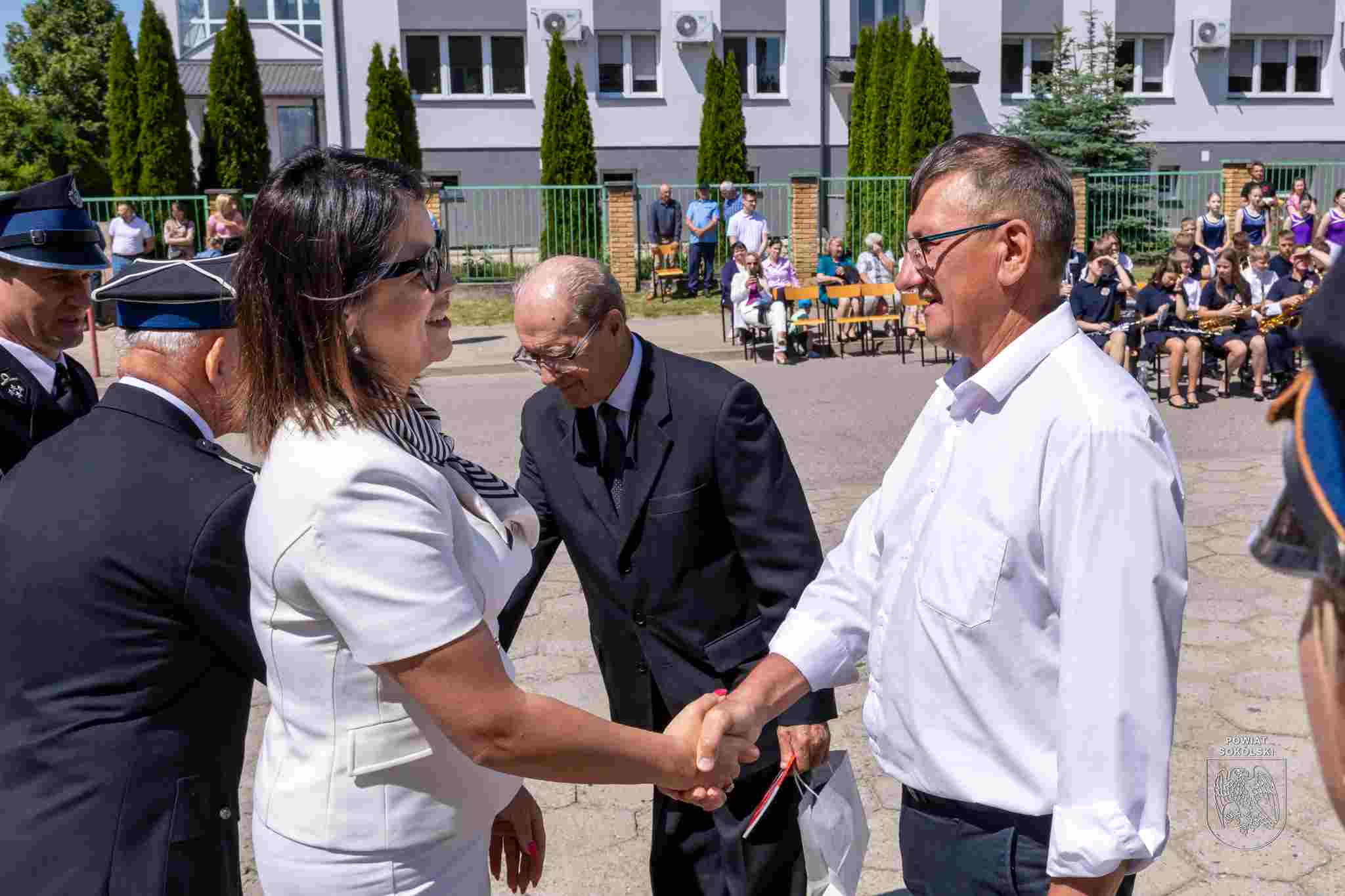List od Podlaskiego Komendanta Wojewódzkiego PSP w Białymstoku odczytał jego zastępca – st. bryg. Grzegorz Lisowski, a obecna na uroczystości Wiesława Burnos, wicemarszałek województwa przekazała pamiątkowy grawerton od marszałka i Zarządu Województwa Podlaskiego.