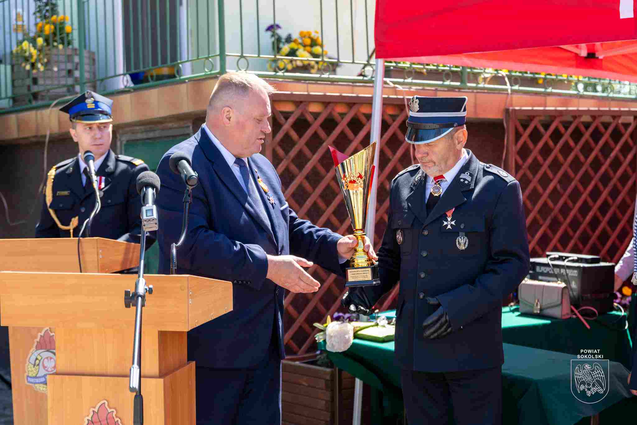 W imieniu starosty i całego Zarządu Powiatu Sokólskiego podziękował OSP i wszystkim strażakom, którzy na przestrzeni tych 100 lat pełnili misję niesienia pomocy drugiemu człowiekowi. Jubilatom życzył dalszego rozwoju jednostki oraz szczęśliwych powrotów z każdej akcji.