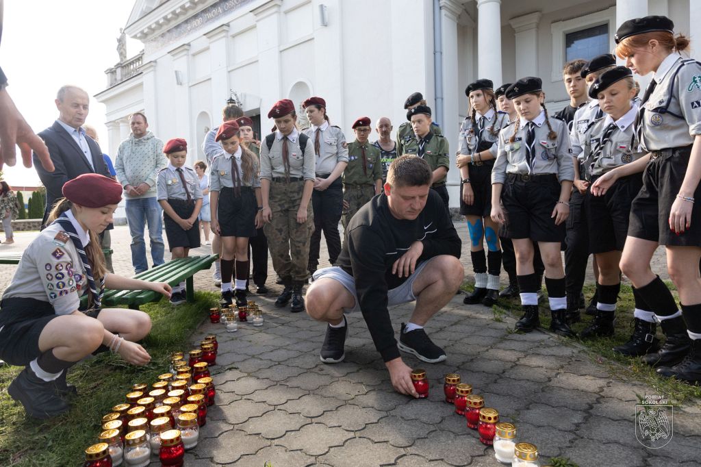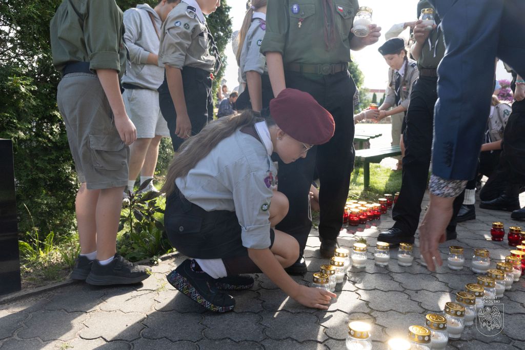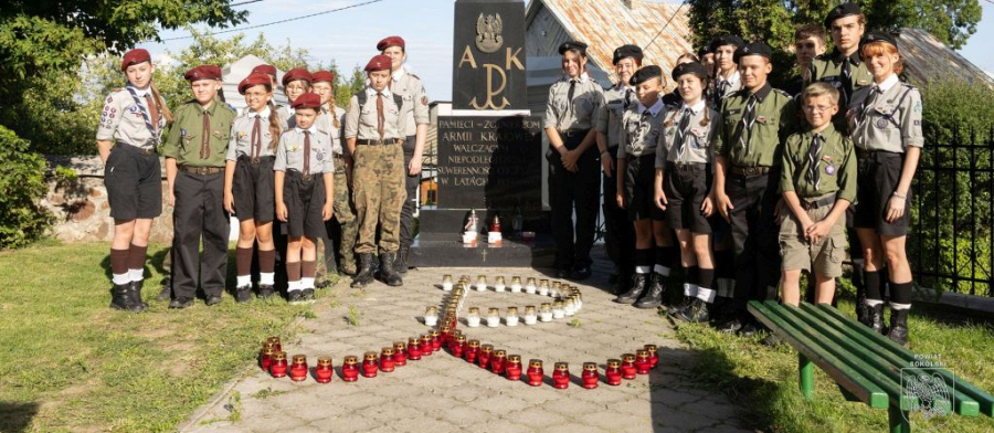 Przy pomniku Armii Krajowej znajdującym się przy sokólskim sanktuarium zapłonęły dziś światełka pamięci, a harcerze z sokólskiego hufca ułożyli przed nim kotwicę z biało-czerwonych zniczy – symbol Polski Walczącej.
