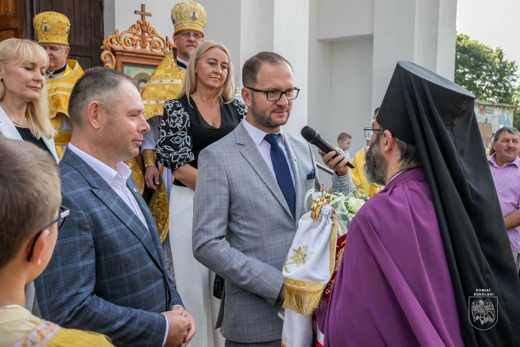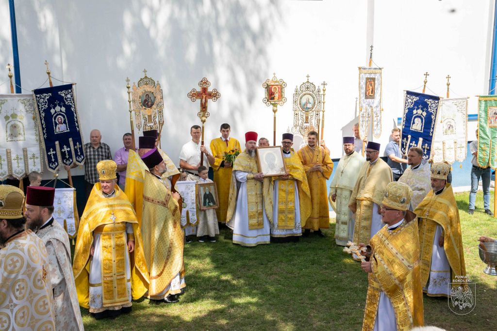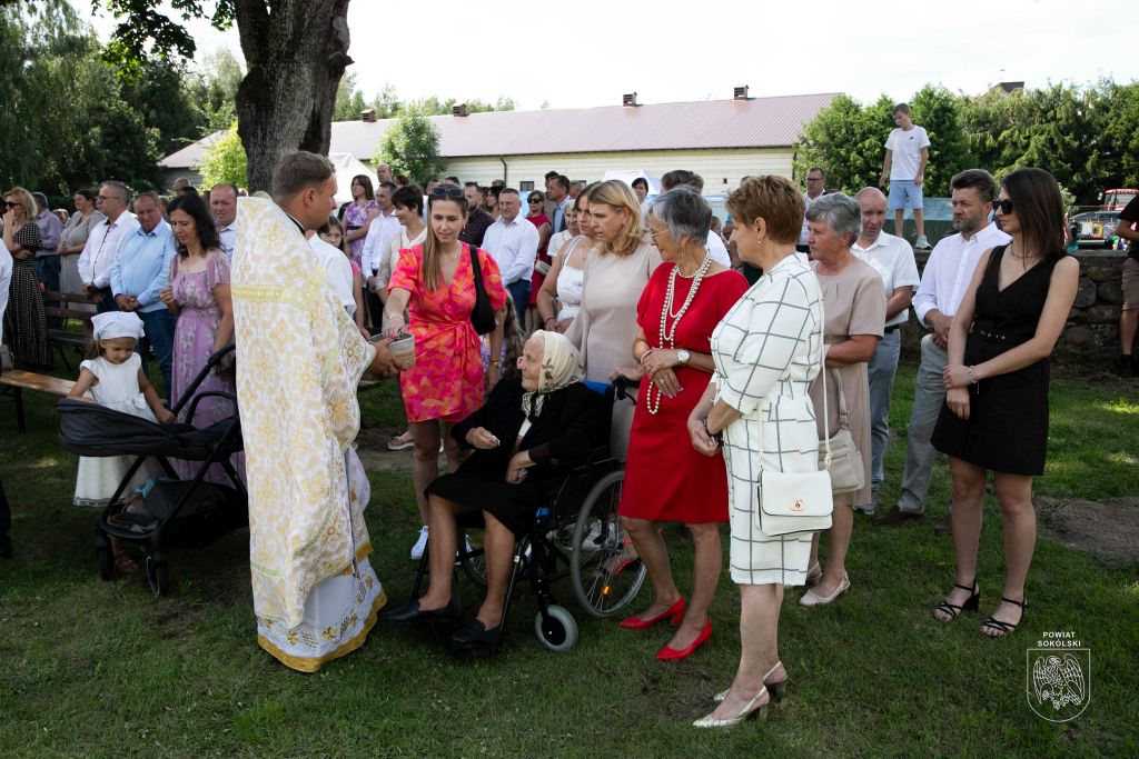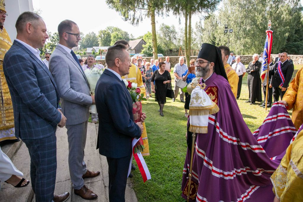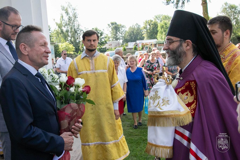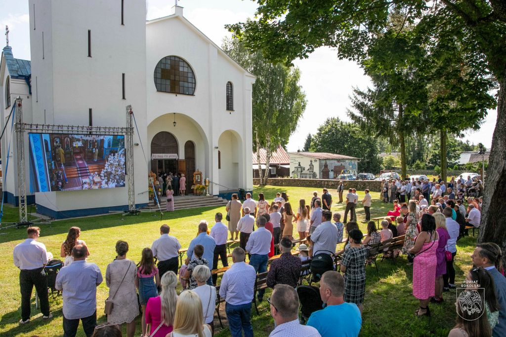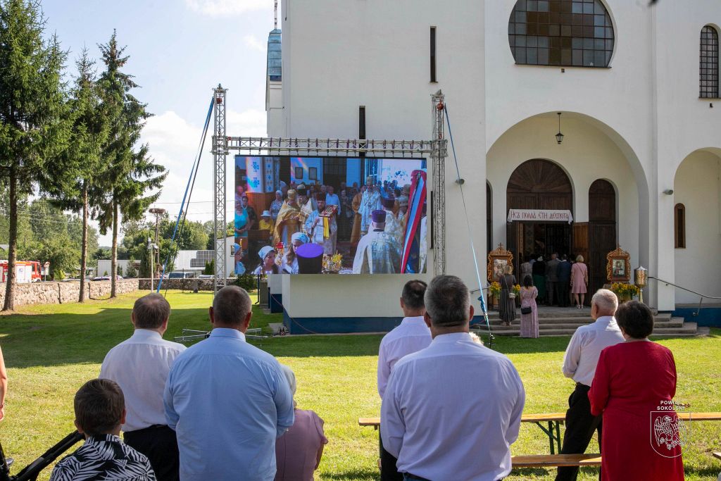 Proboszcz zaznaczył także, że dzięki wsparciu Powiatu Sokólskiego udało się zorganizować transmisję Liturgii na zewnątrz. Osoby stojące przed cerkwią mogły dzięki telebimowi uczestniczyć w uroczystościach.