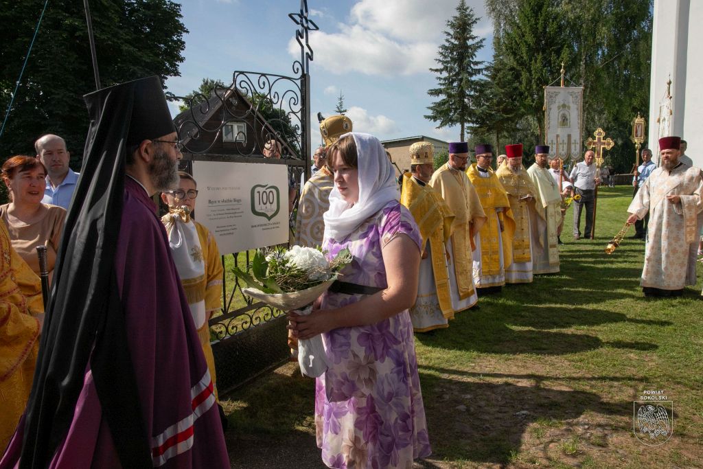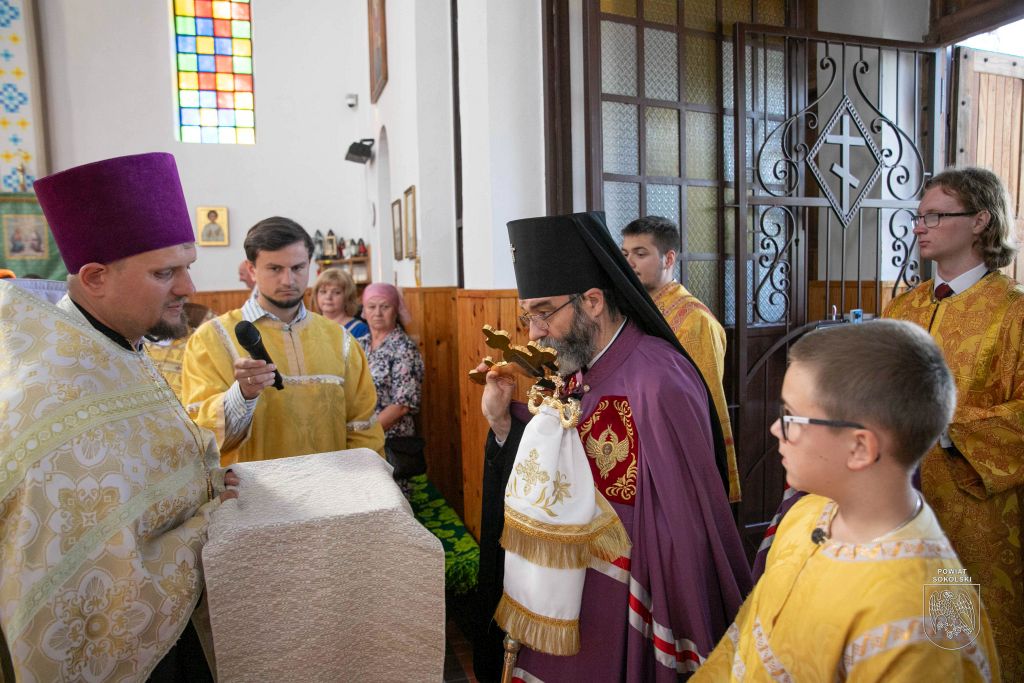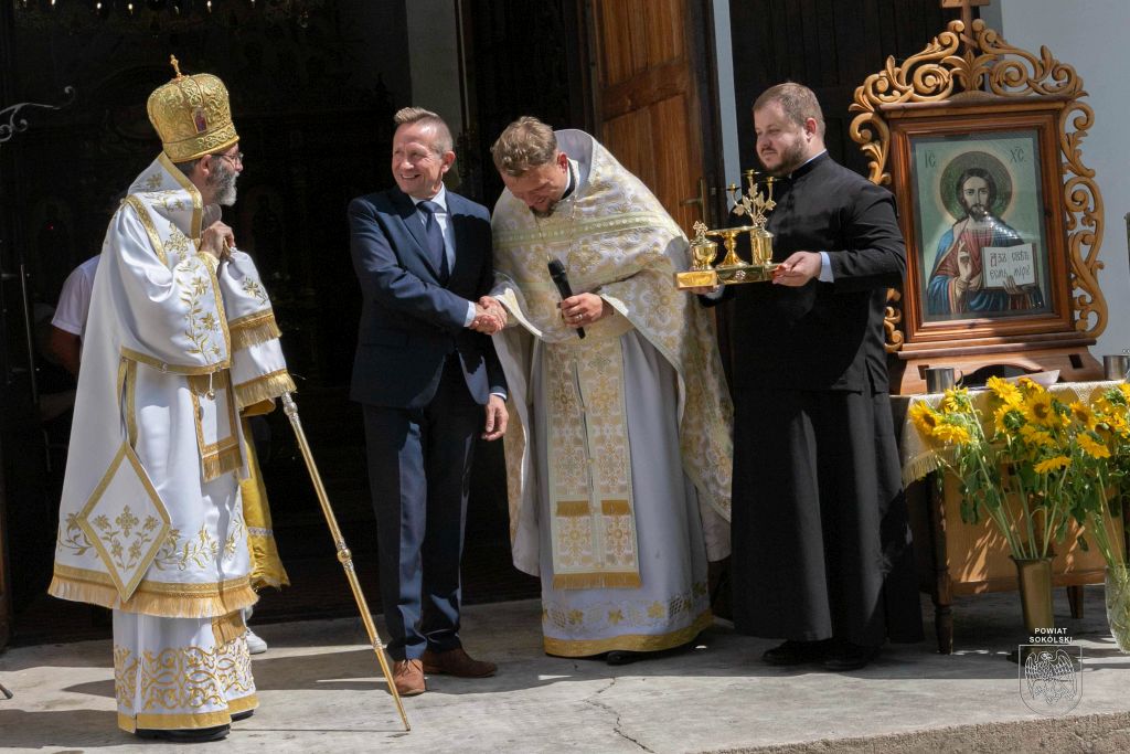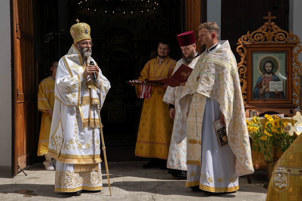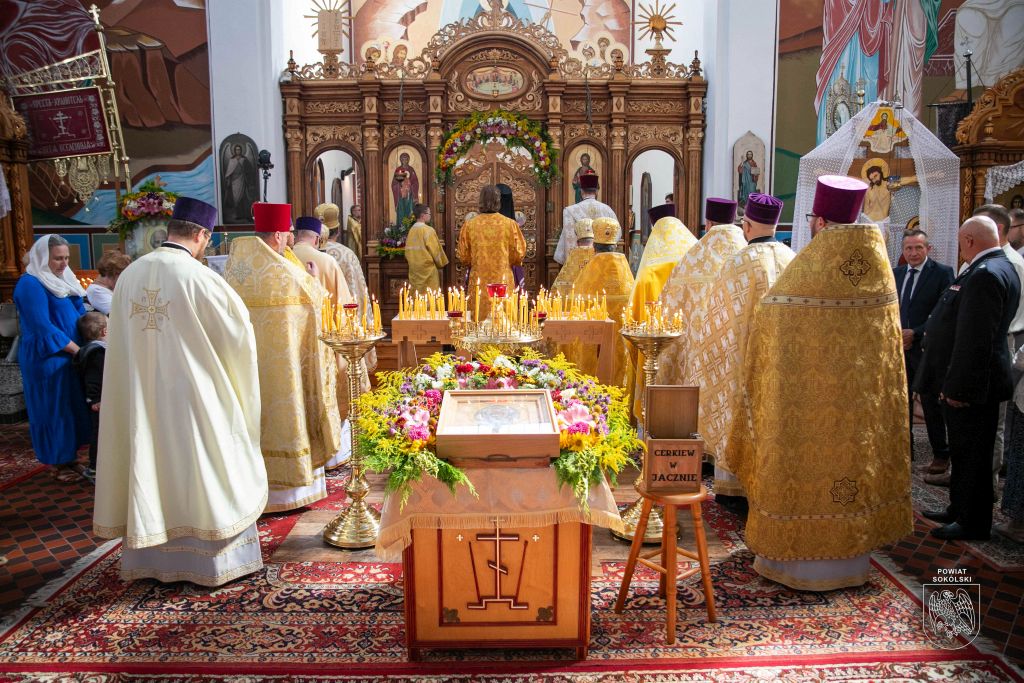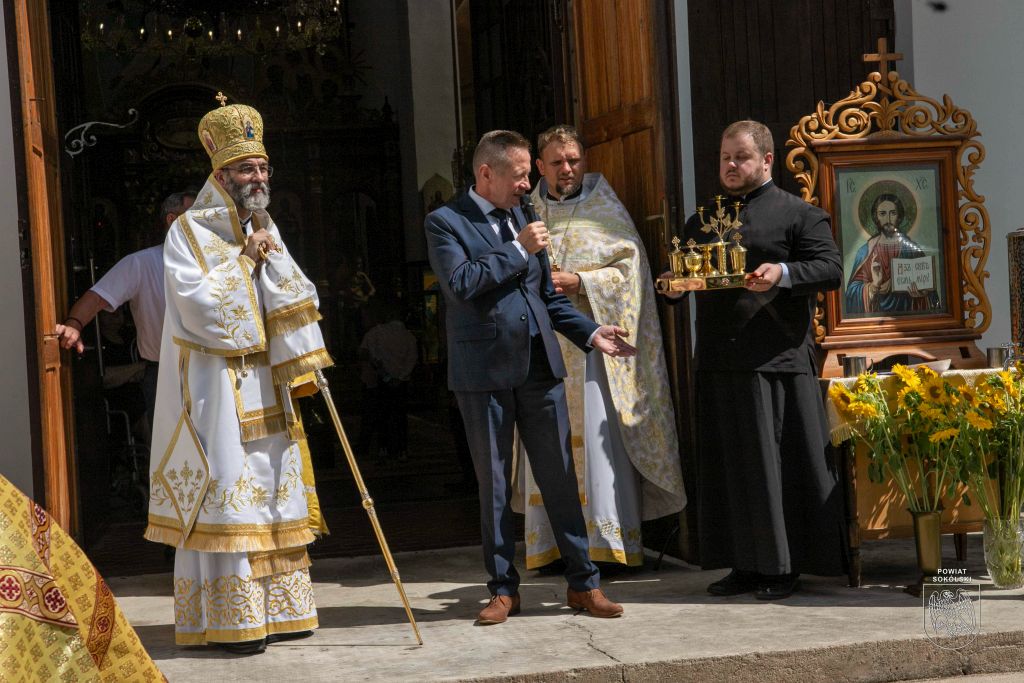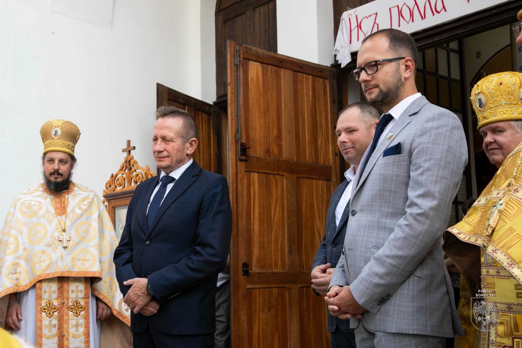Proboszcz zaznaczył także, że dzięki wsparciu Powiatu Sokólskiego udało się zorganizować transmisję Liturgii na zewnątrz. Osoby stojące przed cerkwią mogły dzięki telebimowi uczestniczyć w uroczystościach.