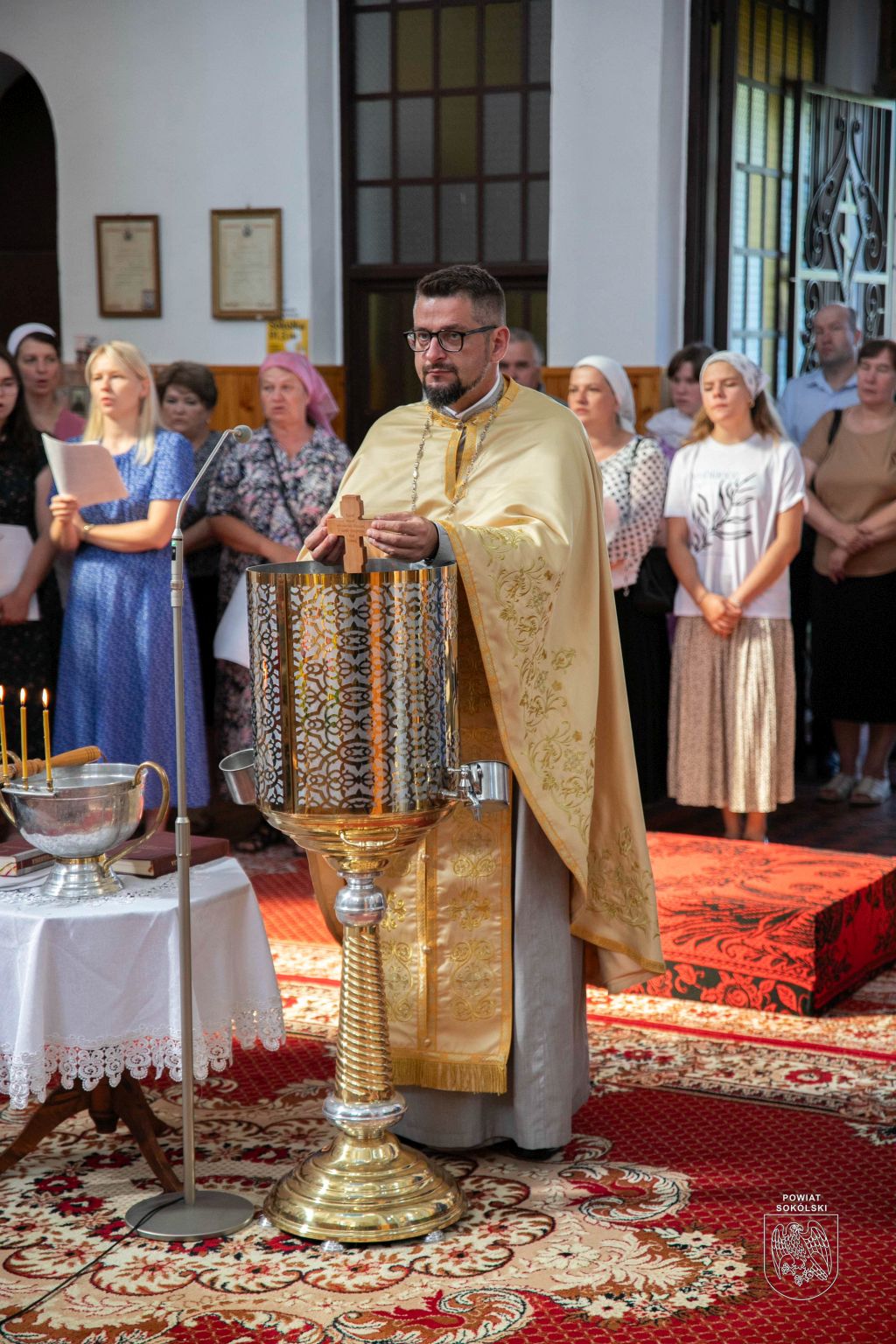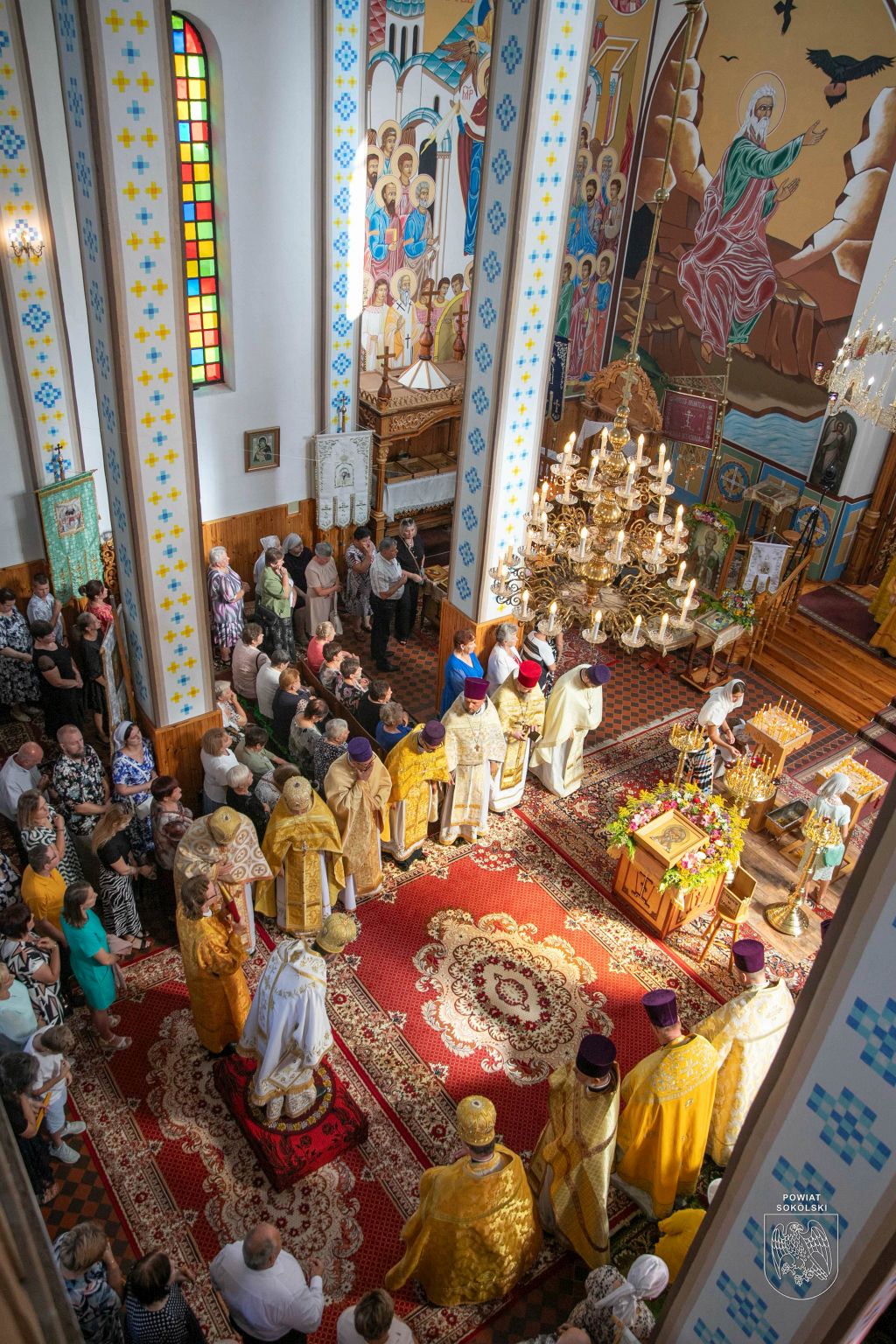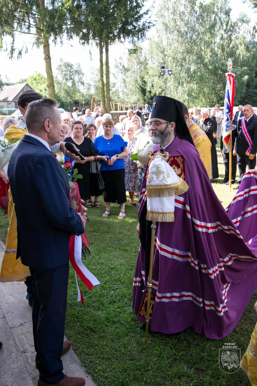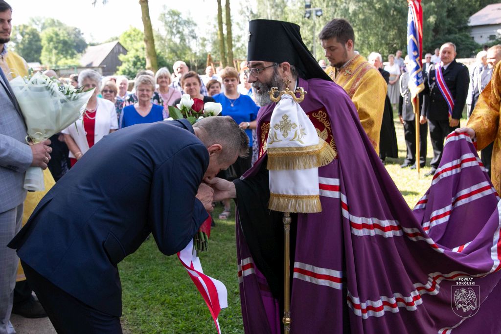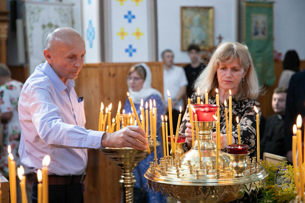 Proboszcz zaznaczył także, że dzięki wsparciu Powiatu Sokólskiego udało się zorganizować transmisję Liturgii na zewnątrz. Osoby stojące przed cerkwią mogły dzięki telebimowi uczestniczyć w uroczystościach.