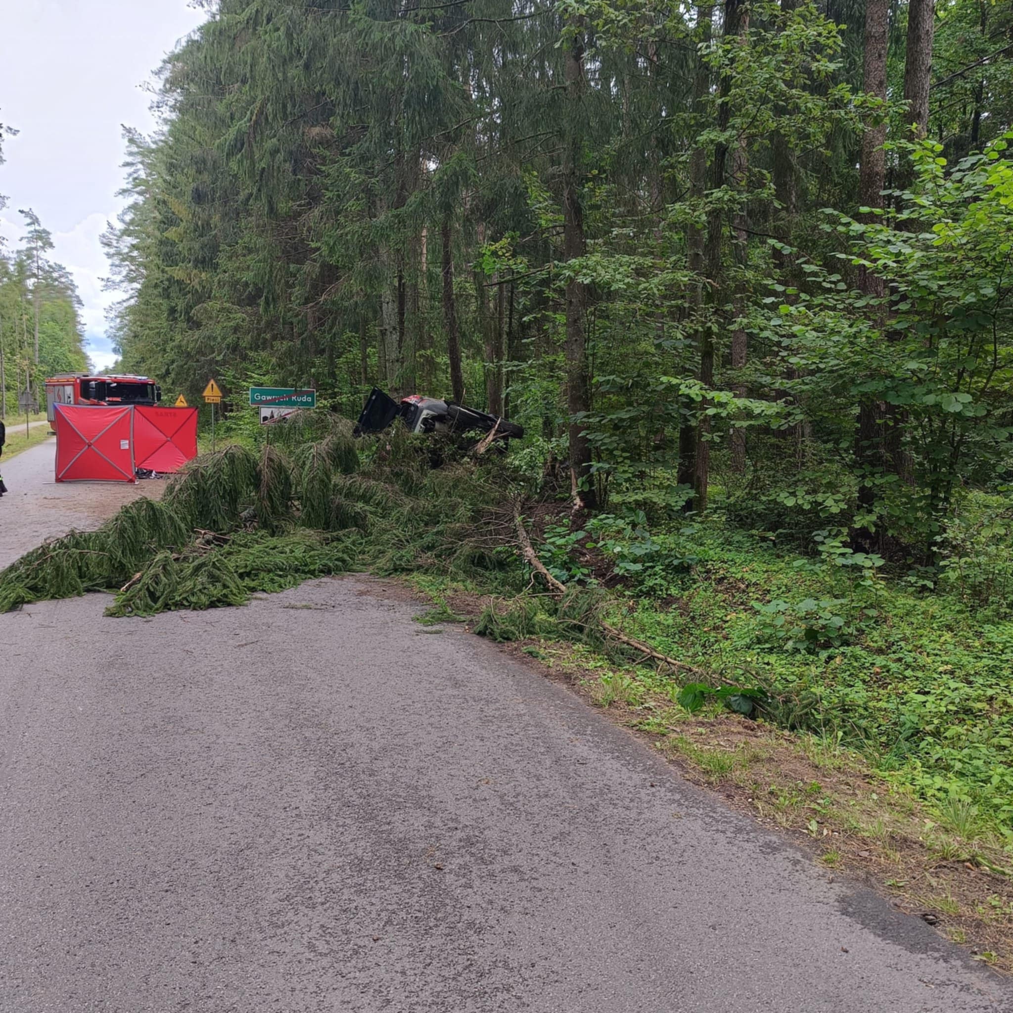 Kierujący pojazdem marki Volvo, jadąc od miejscowości Płociczno w kierunku Bryzgla, na łuku drogi stracił panowanie nad pojazdem i uderzył w przydrożne drzewo. Kierujący samochodem marki Volvo, 52-letni mężczyzna, został przewieziony do szpitala. Niestety, podróżujący z nim 42-letni pasażer zginął na miejscu. Na miejscu trwają czynności mające na celu ustalenie szczegółowych zdarzenia.