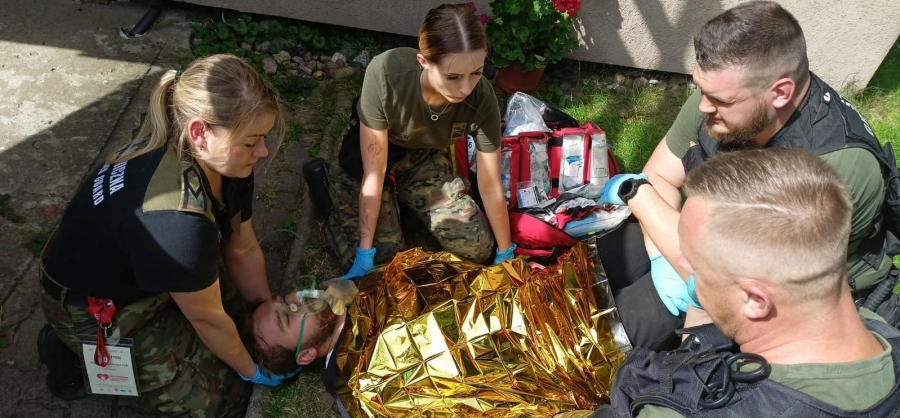 Jak się jednak okazało, prawdziwy egzamin z umiejętności ratowniczych czekał funkcjonariuszy Placówki Straży Granicznej w Kuźnicy tuż po zakończeniu mistrzostw. Wracając z zawodów, w pobliżu Pałacu Branickich w Białymstoku, byli świadkami zdarzenia z udziałem młodego rowerzysty. Chłopak jadąc przewrócił się i uderzył głową o chodnik, po czym stracił przytomność. Funkcjonariusze natychmiast ruszyli z pomocą, zabezpieczyli głęboką ranę głowy i wezwali pogotowie ratunkowe. Pozostali z poszkodowanym, aż do przyjazdu medyków.