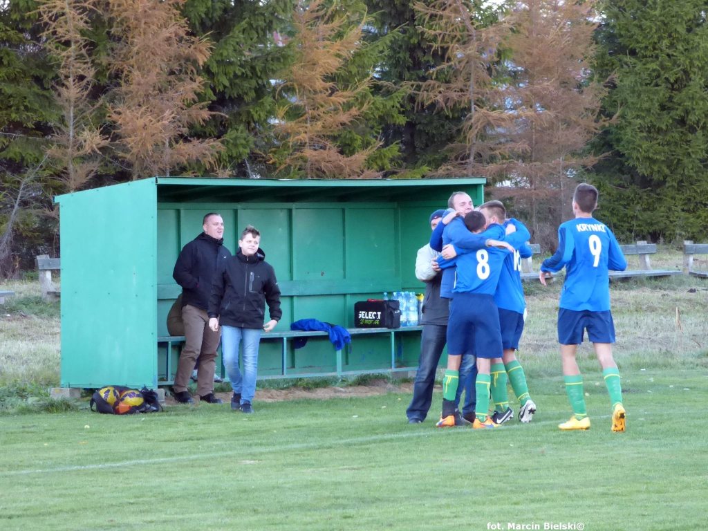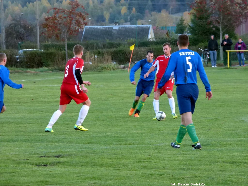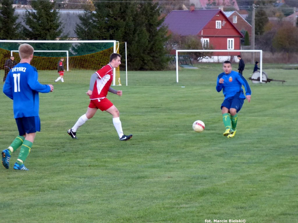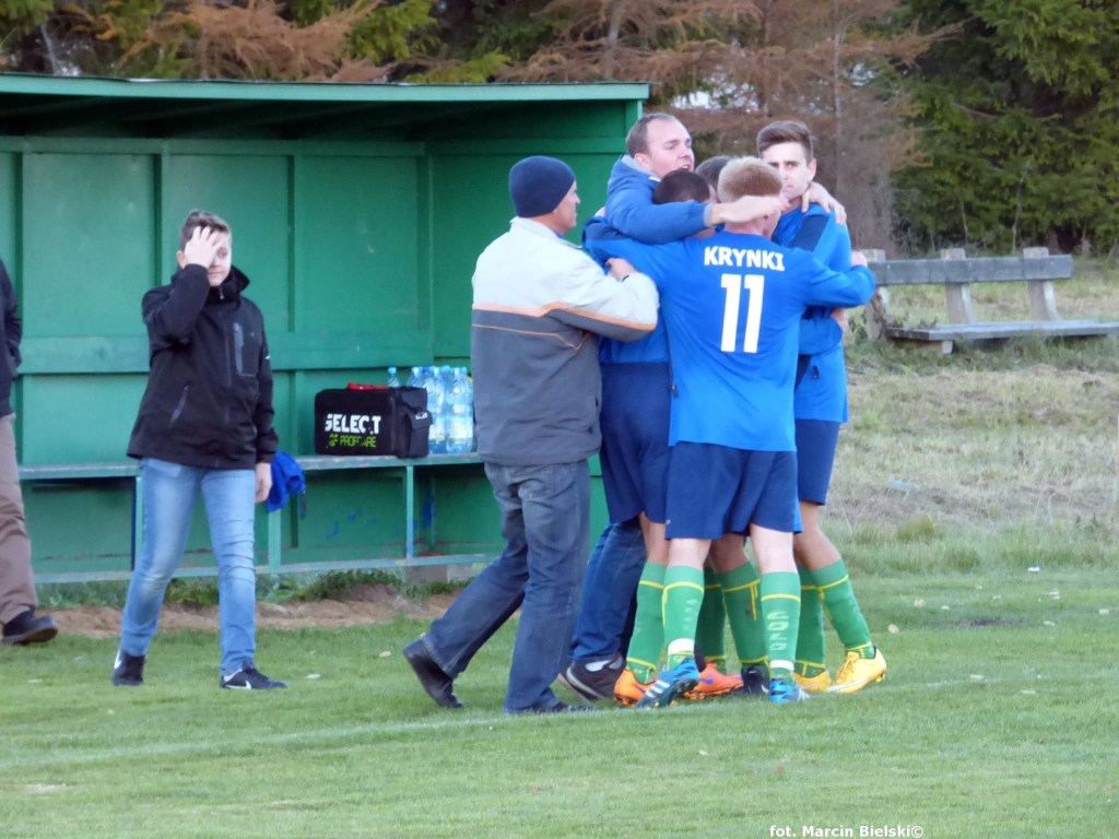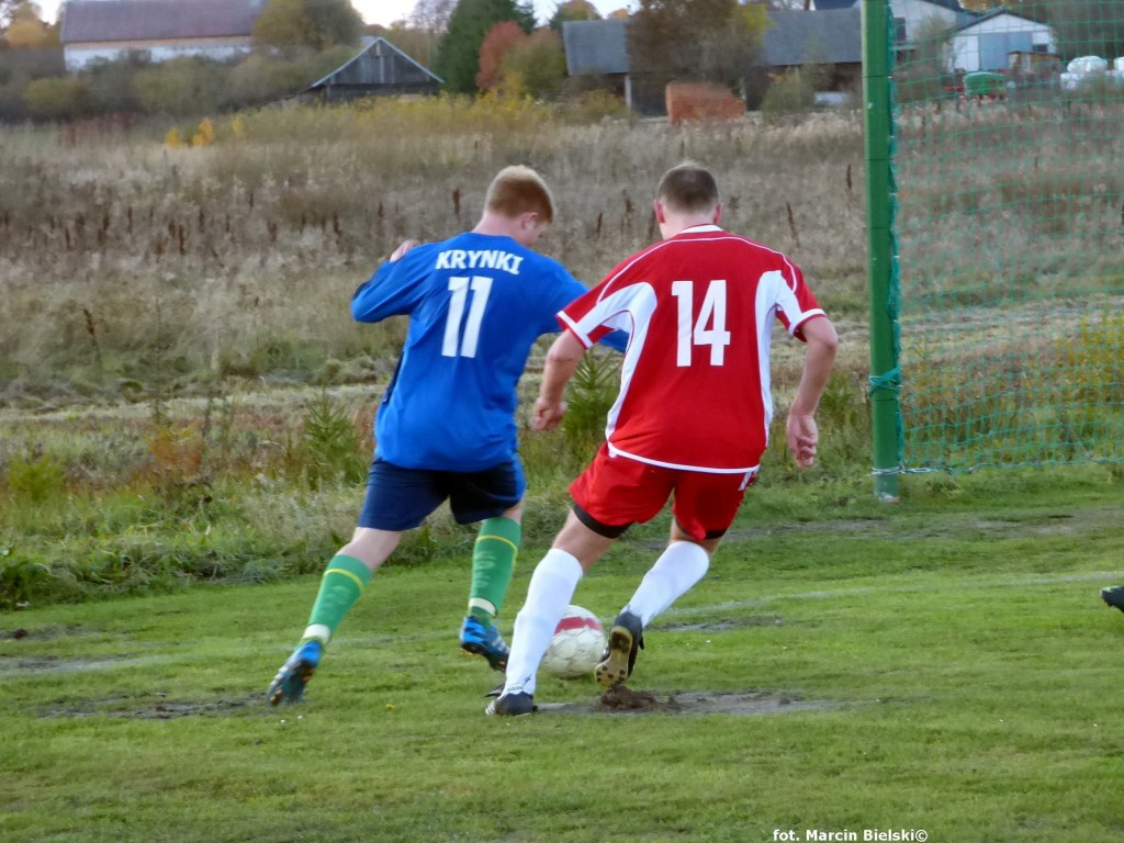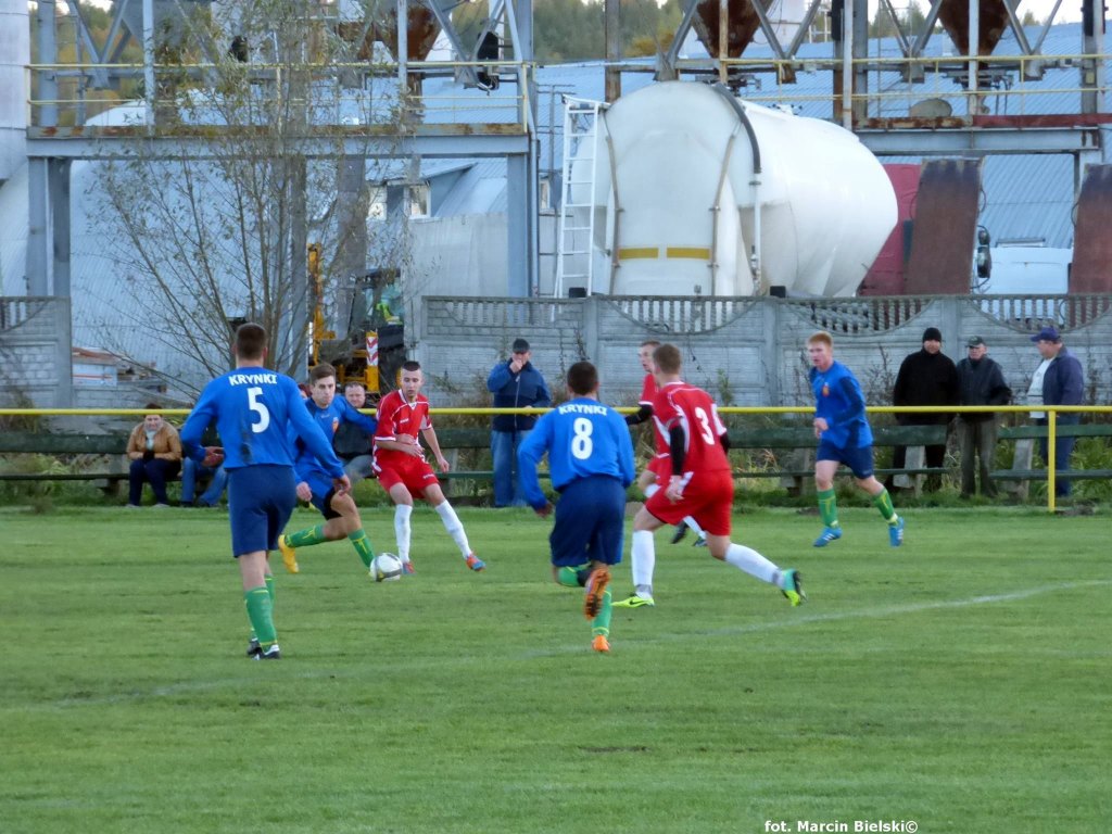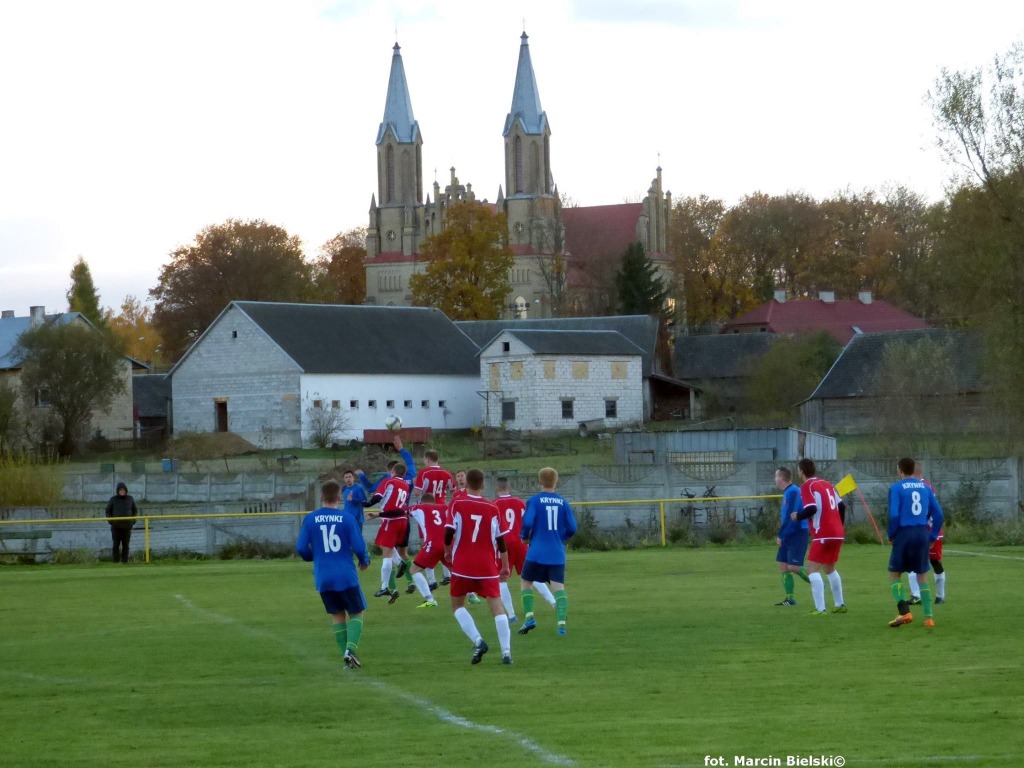 UM Krynki pokonał BKS Jagiellonię Białystok 1:0 i został wiceliderem „okręgówki”. Od 30 minuty gospodarze grali z przewagą jednego zawodnika. W wyniku drugiej żółtej kartki, a w konsekwencji czerwonej boisko musiał opuścić gracz Jagiellonii. Zawodnicy z Krynek wykorzystali przewagę i zdobyli bramkę. Następny mecz UM Krynki zagra na wyjeździe z Narwią Choroszcz.