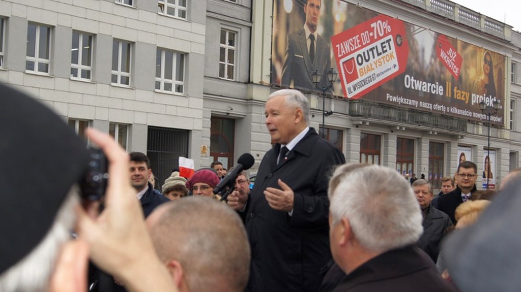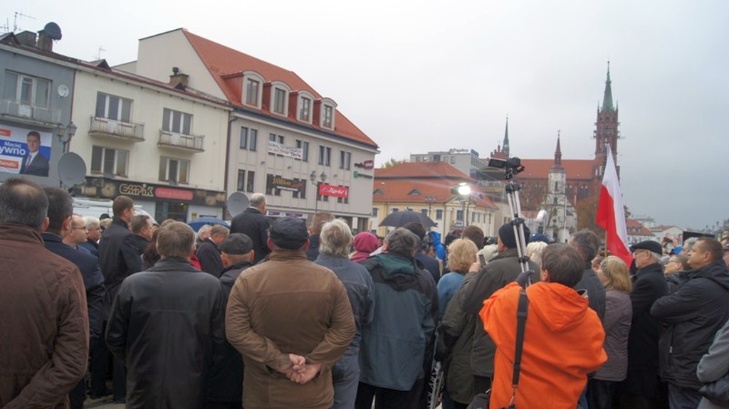 W centrum miasta, przy Sanktuarium NMP Matki Miłosierdzia i Ratuszu zgromadziły się tłumy ludzi. Tematem przemówienia była sytuacja w kraju i możliwości jej zmiany na lepsze. Jarosław Kaczyński zachęcał mieszkańców naszego województwa do pójścia do urn w dzień wyborów - 25 października.