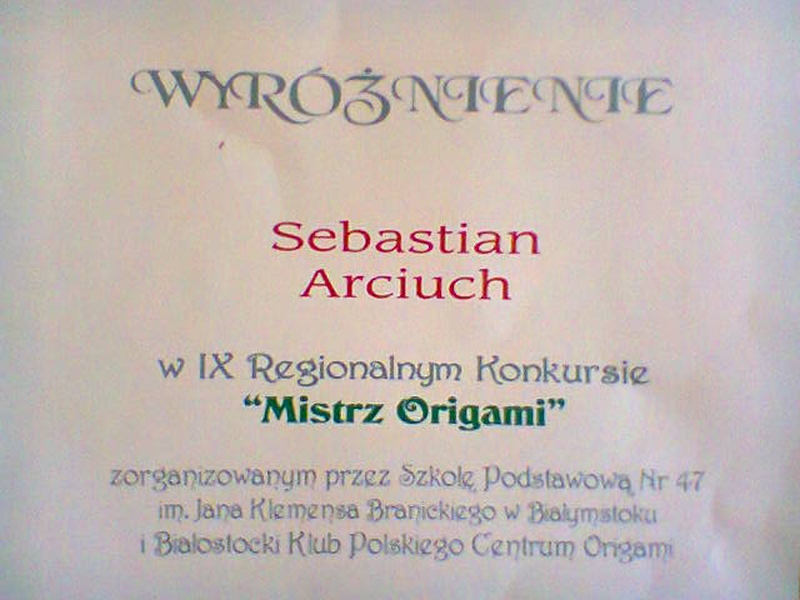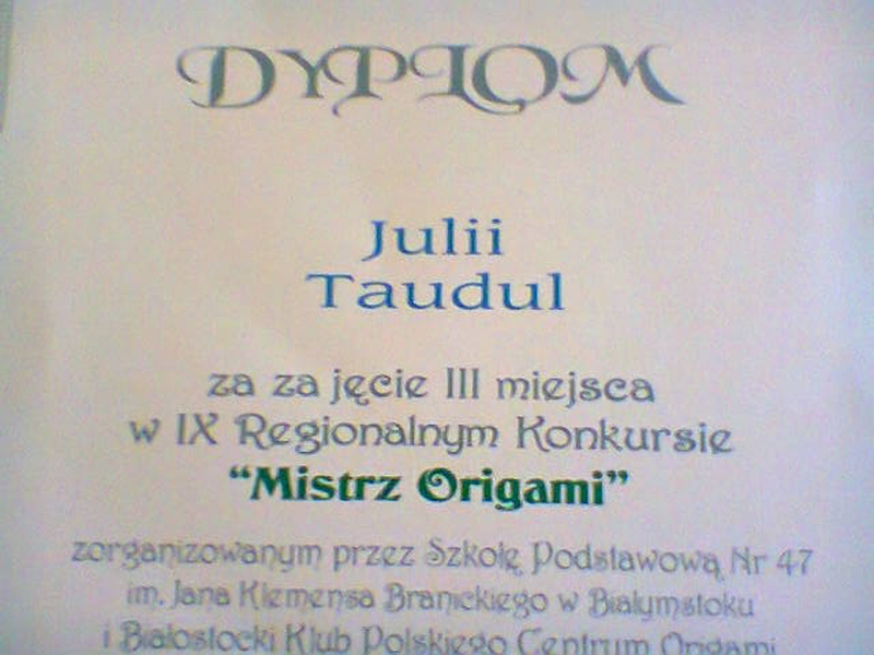 Powstanie koła zainspirowało uczniów do wzięcia udziału w IX Regionalnym Konkursie „Mistrza Origami" zorganizowanym przez Szkołę Podstawową Nr 47 im. Jana Klemensa Branickiego w Białymstoku i Białostocki Klub Polskiego Centrum Origami.
