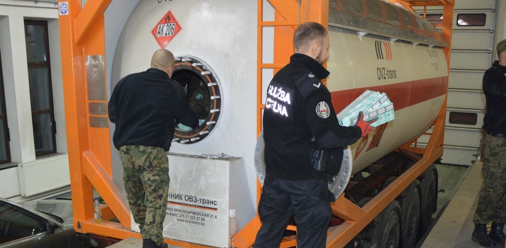 Funkcjonariusze Straży Granicznej podjęli decyzję o szczegółowym sprawdzeniu pociągu towarowego, który z Białorusi przyjechał na stację przeładunkową. Z ustaleń prowadzonych przez Straż Graniczną wynikało, że we wnętrzu trzech cystern z gazem mogą być ukryte przemycane papierosy. W związku z tym zostały one przetransportowane na teren drogowego przejścia granicznego w Kuźnicy, gdzie współdziałający funkcjonariusze Służby Celnej, prześwietlili je przy użyciu urządzenia skanującego. Obraz na monitorze potwierdził przypuszczenia kontrolujących. W cysternach zamiast deklarowanego w dokumentach przewozowych gazu znajdowały się papierosy bez polskich znaków akcyzy. Oprócz gigantycznej kontrabandy wnętrze cystern wypełnione było workami z cementem oraz małymi butlami z gazem. Wszystko po to by ukryć przemycany towar.