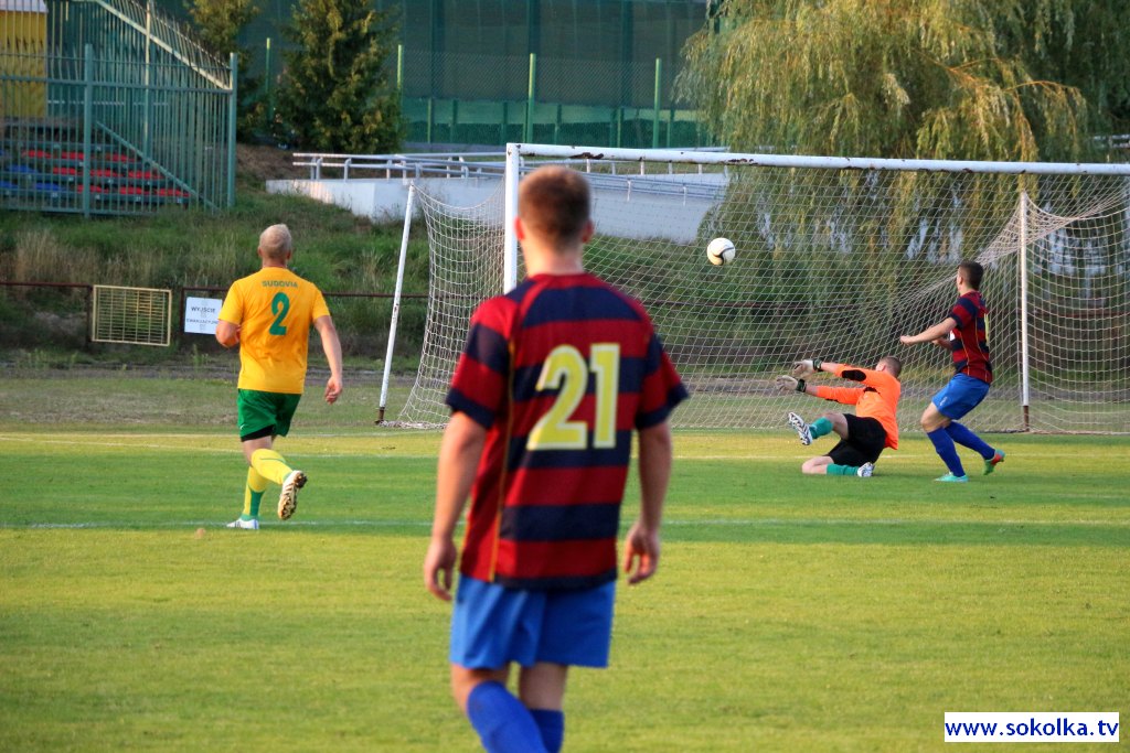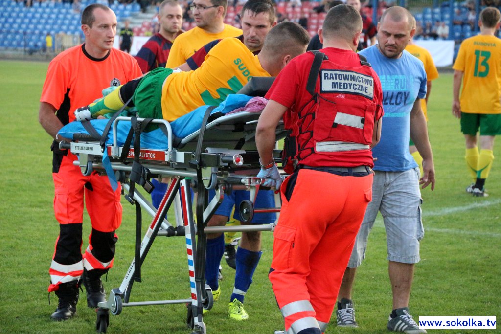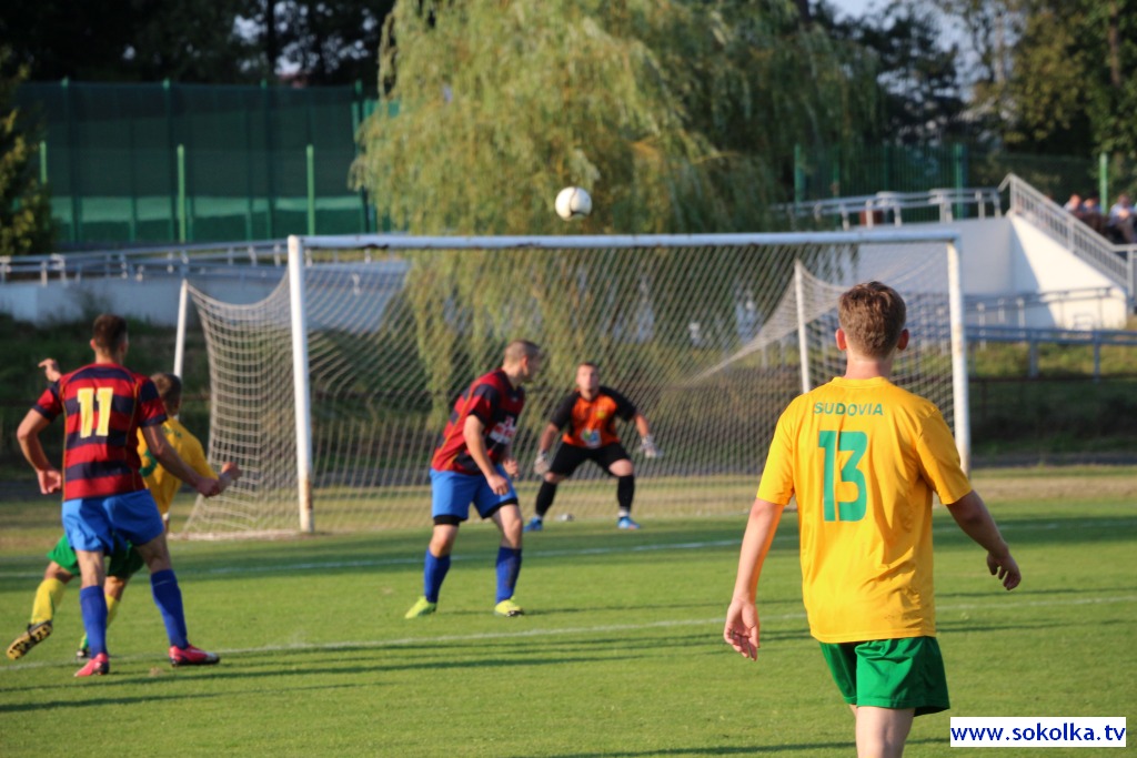 Środowy mecz, którego stawką był awans do kolejnej rundy Pucharu Polski na szczeblu wojewódzkim, był niezwykle ciekawy i dramatyczny. Kilkudziesięciu obecnych kibiców zebranych z pewnością nie żałowało przybycia na stadion. Już w pierwszych minutach meczu Sokół zdobył pierwszą bramkę. Sokół grał dobrze w obronie, nie pozwalając przeciwnikom zagrozić własnej bramce. Do końca pierwszej połowy Sokółczanie zdobyli jeszcze dwie bramki. Po przerwie gospodarze ruszyli do ataku. Bardzo szybko zdobyli kolejną bramkę. 10 minut przed końcem doszło do groźnego zderzenia piłkarzy Sokoła i Sudovii. Wskutek czego zawodnik z Szudziałowa złamał kość piszczelową. Na miejsce przyjechał zespół Pogotowia Ratunkowego, który opatrzył zawodnika, a następnie zabrał do szpitala. Po kilkunastominutowej przerwie mecz został wznowiony. Zespół z Sokółki zdołał zdobyć jeszcze jedną bramkę. Mecz zakończył się wynikiem 5:0 na korzyść Sokoła 1946 Sokółka.